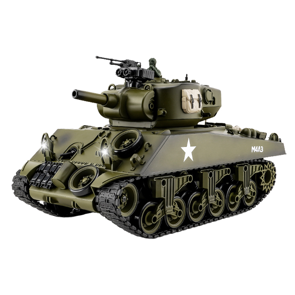 021 1/18 2.4G American Sherman M4A3 RC Tank Models Simulation Smoke Effects LED Lights for Children Toys