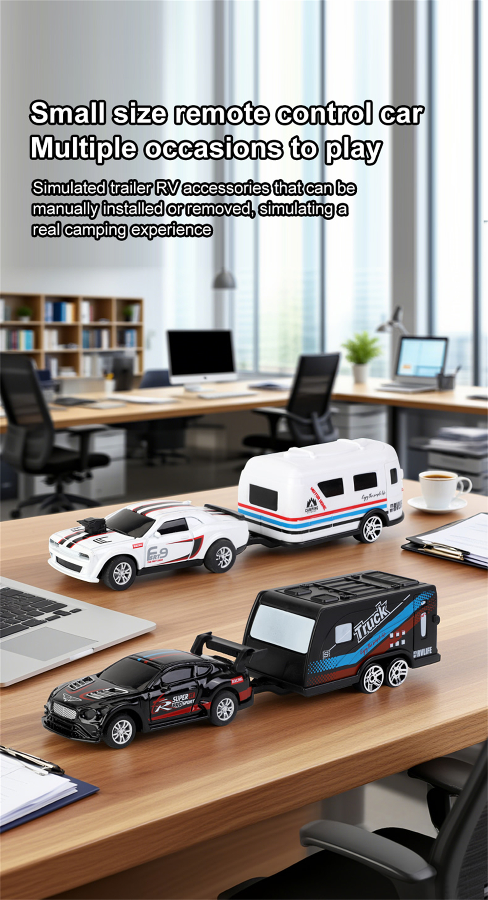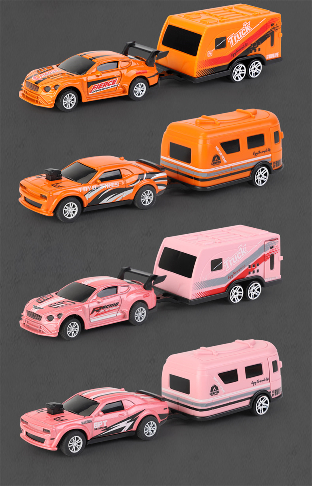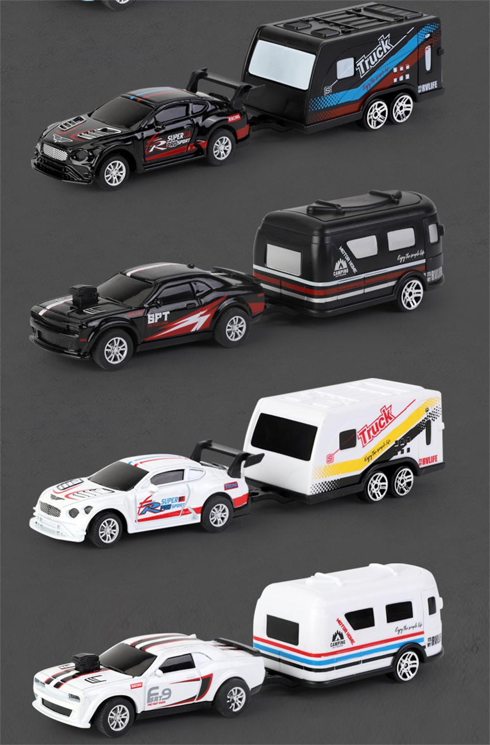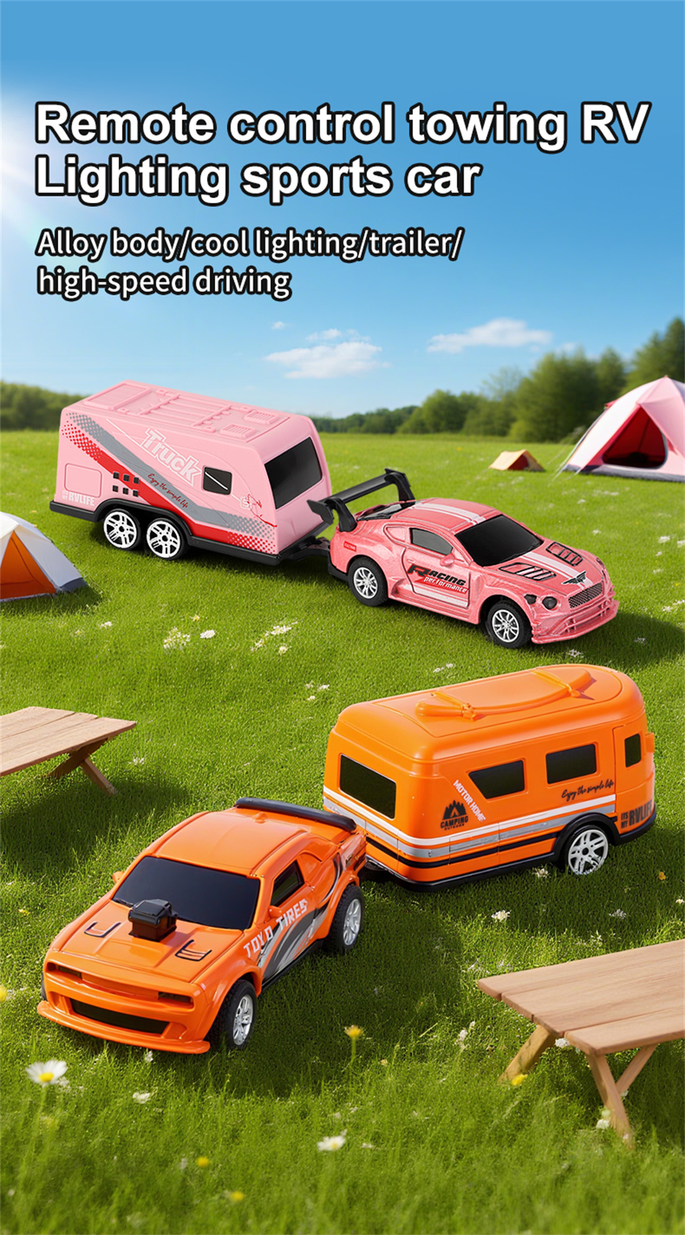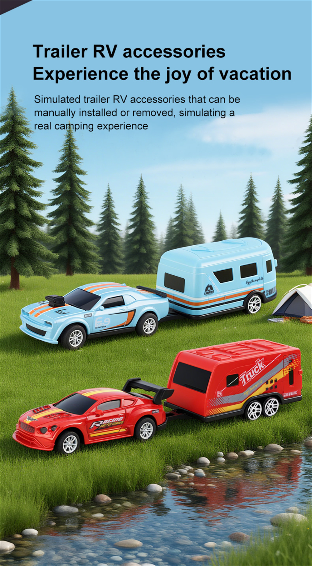 3.Simulated RV Trailer Design: Detachable RV accessories emulate real camping adventures, enhancing playtime versatility and immersion.