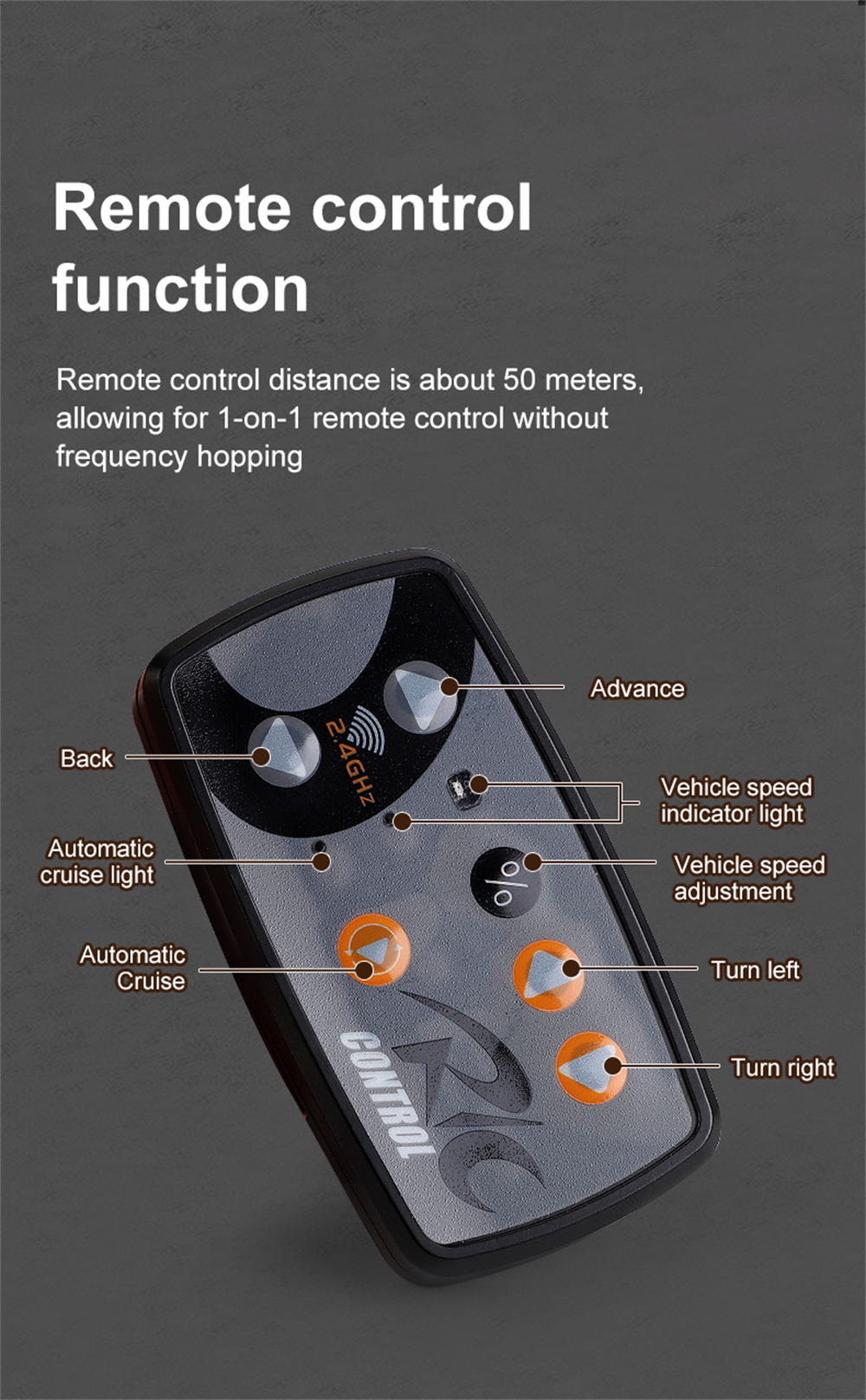 4.2.4GHz Remote Control Technology: Stable long-distance control up to 50 meters with anti-interference, enabling smooth operation alongside multiple vehicles.