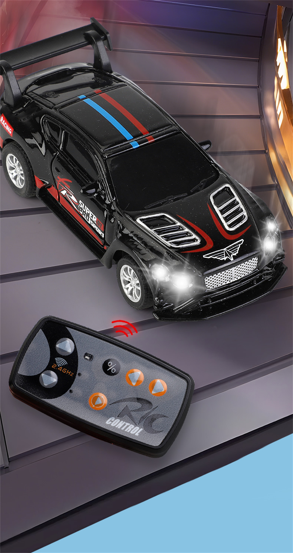 5.Cool Lights for Night Use: LED lights embedded in car bodies offer striking visibility and fun nighttime racing games.