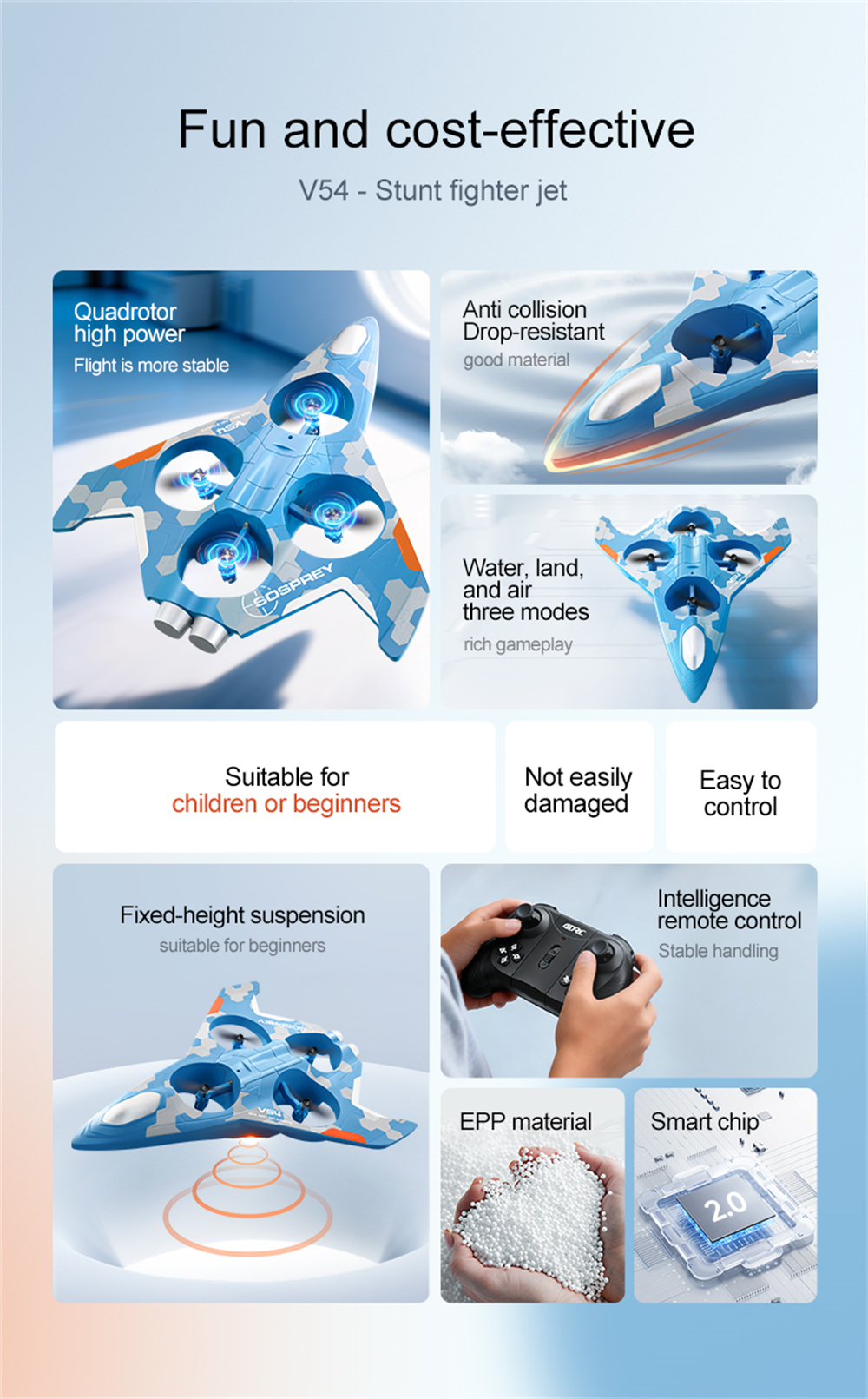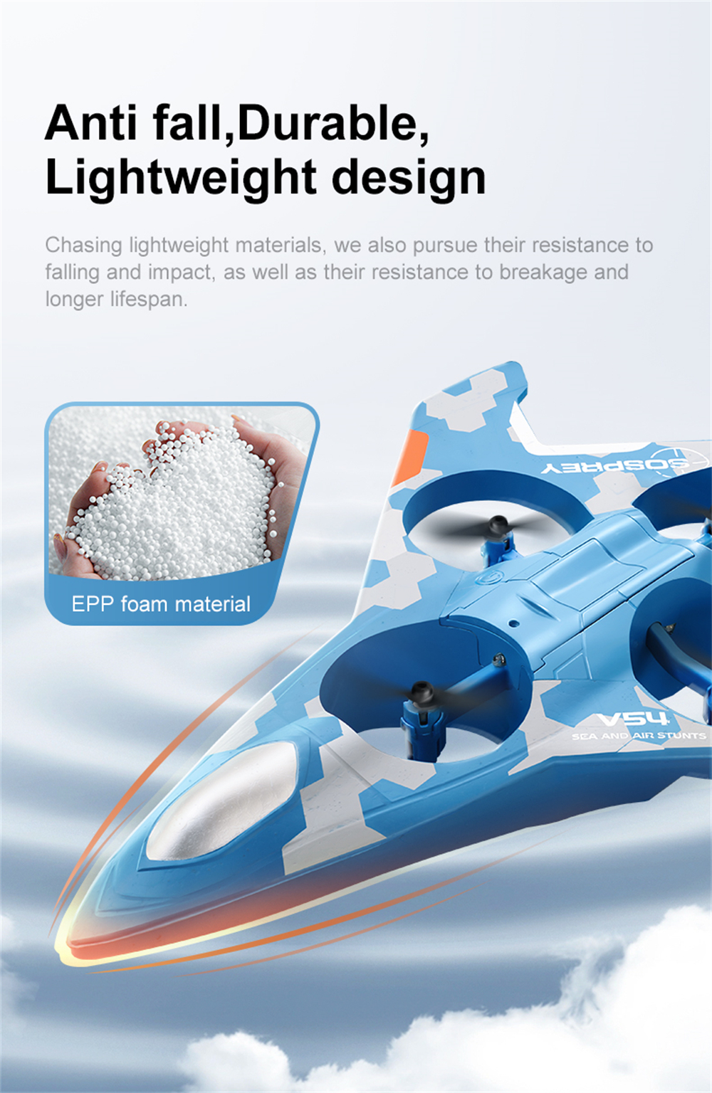 4DRC V54 3-IN-1 Land Sea Air 2.4G EPP Hover Fighter Glider Altitude Hold Mode Remote Control Kids Gifts RC Toys Flying Car Boat Drone Quadcopter RTF