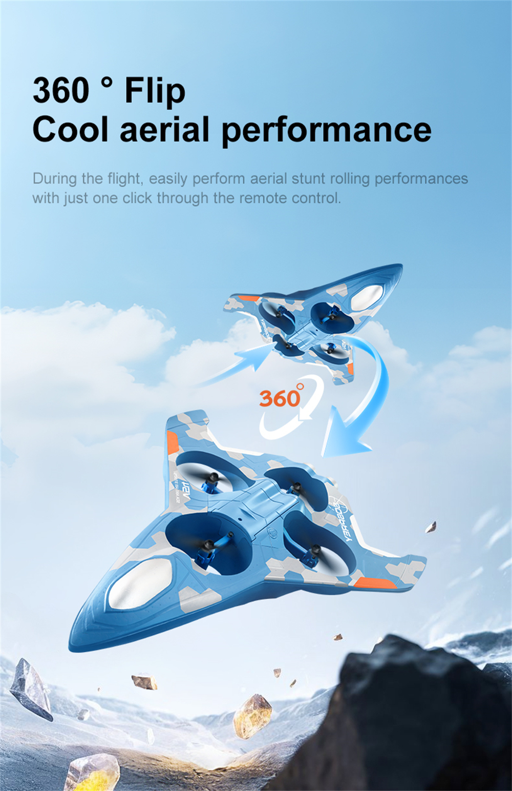 – 360° Aerobatic Rolls: Perform stunning aerial stunts with a one-click button for seamless experiences.