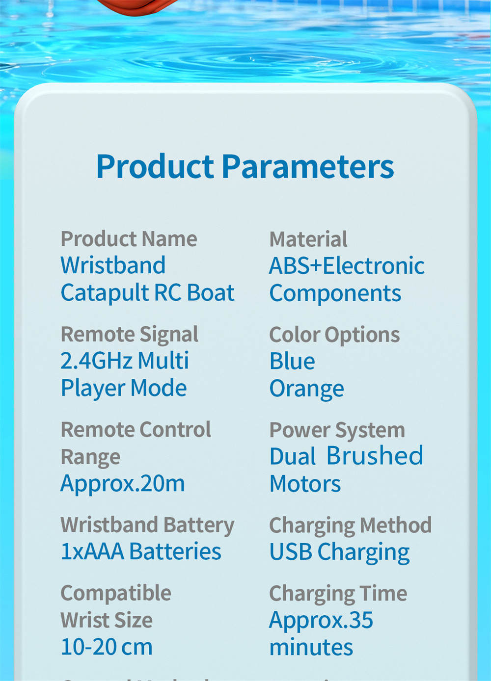 Boat Battery:3.7V 90mAh Li-ion battery(included) Battery Playing TimeAbout 12 minutes |