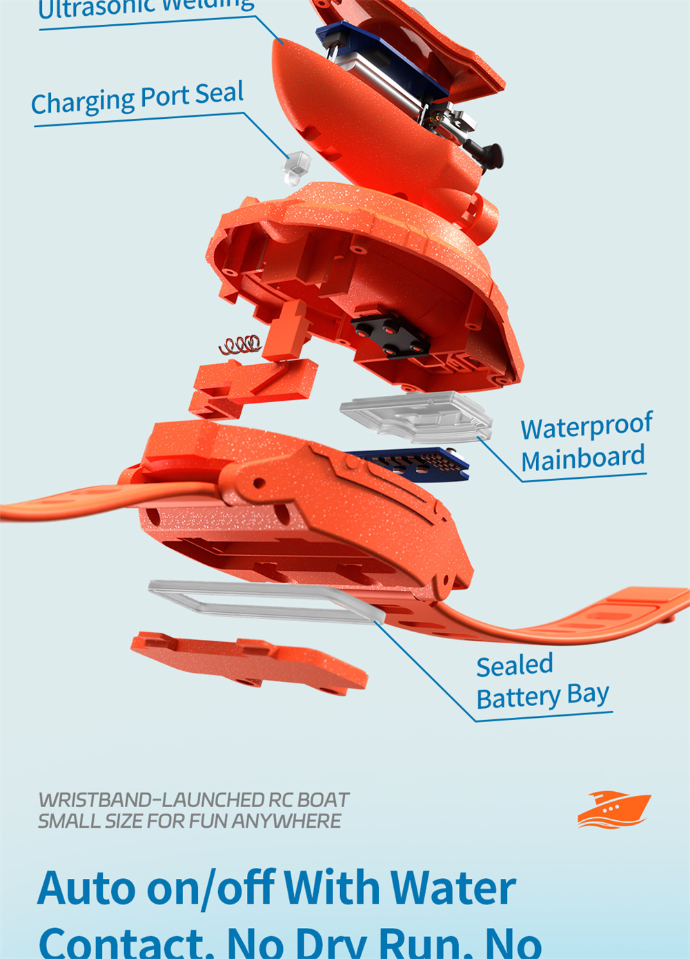 Auto on/offwith water contact. No dry run. No accidental propeller contact.