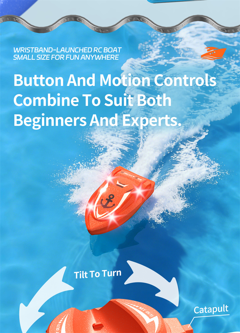 88RC RC43 2.4G Mini Yacht RC Boat Wristband Launched Remote Control Waterpoof High Speed Palm Speedboat Water Pool Toys