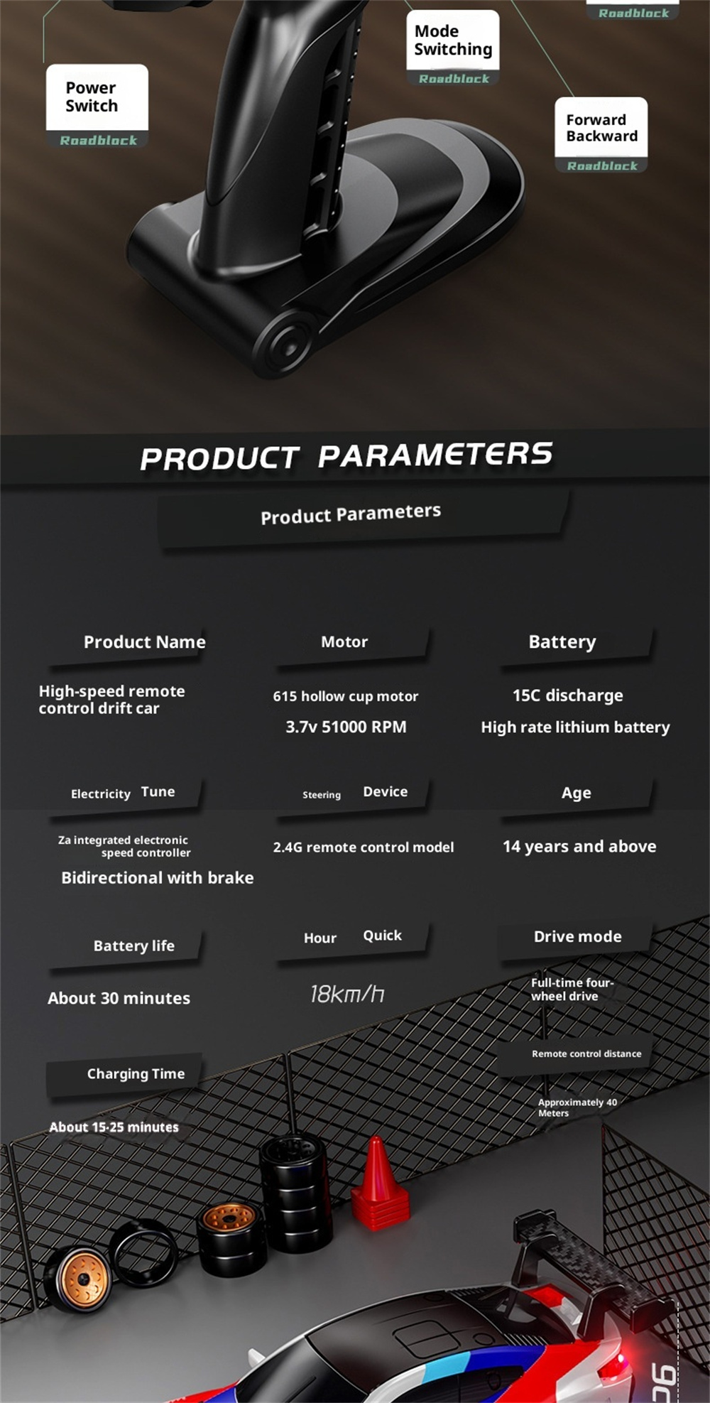 The package includes 4 traffic safety cones so you can set up your own drift courses and practice various maneuvers, providing endless fun.