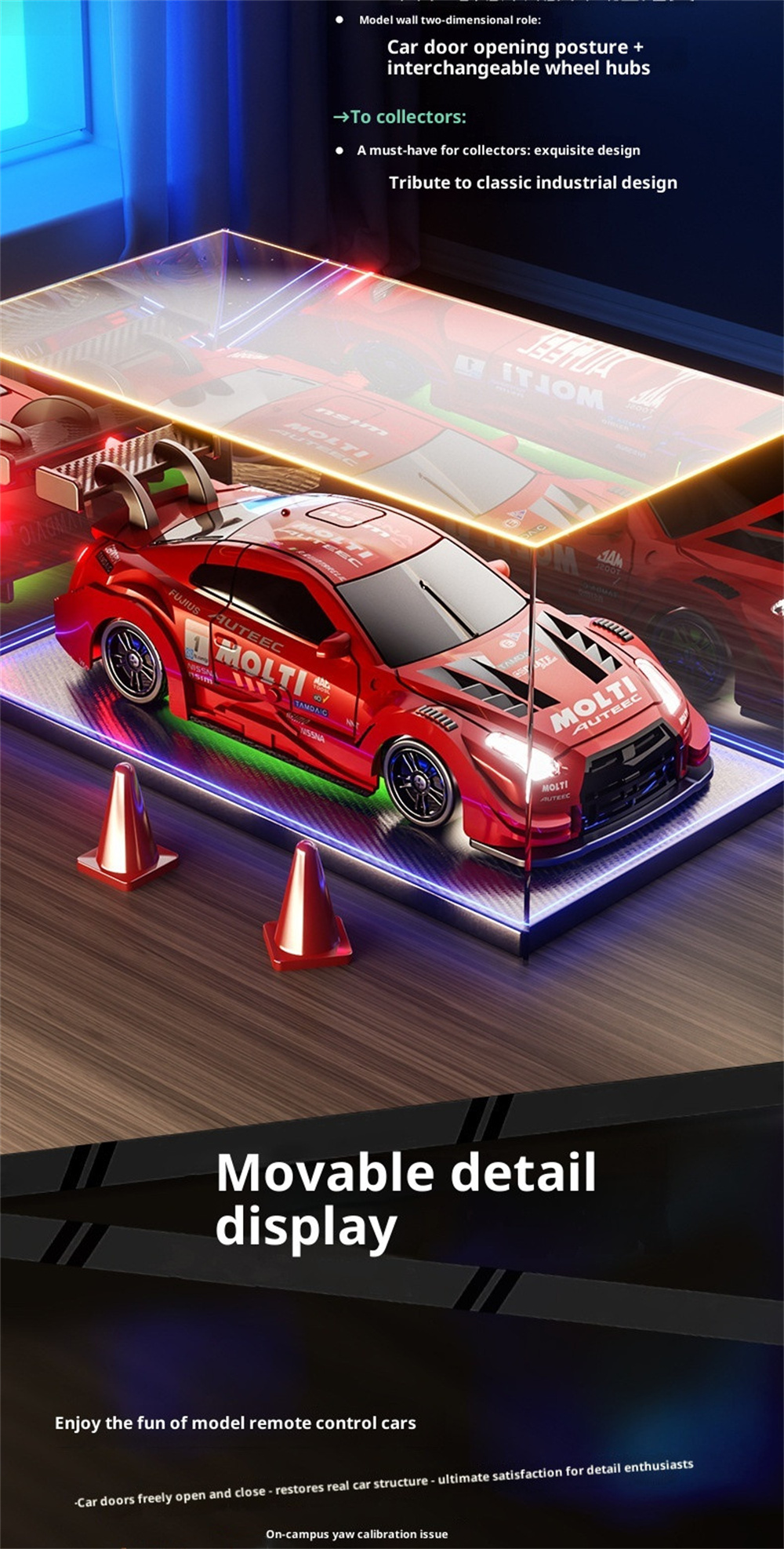 This RC car is portable and easy to carry, making it suitable for indoor and outdoor use.
