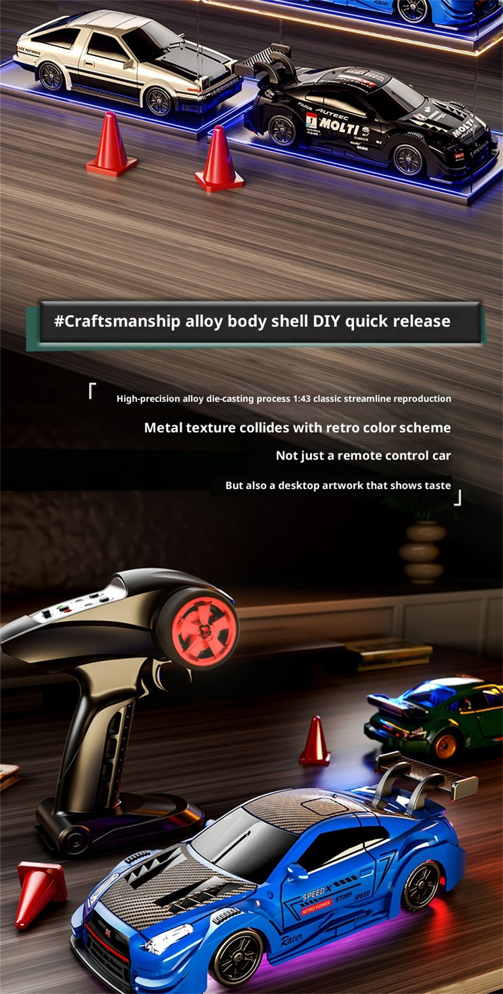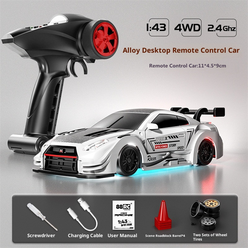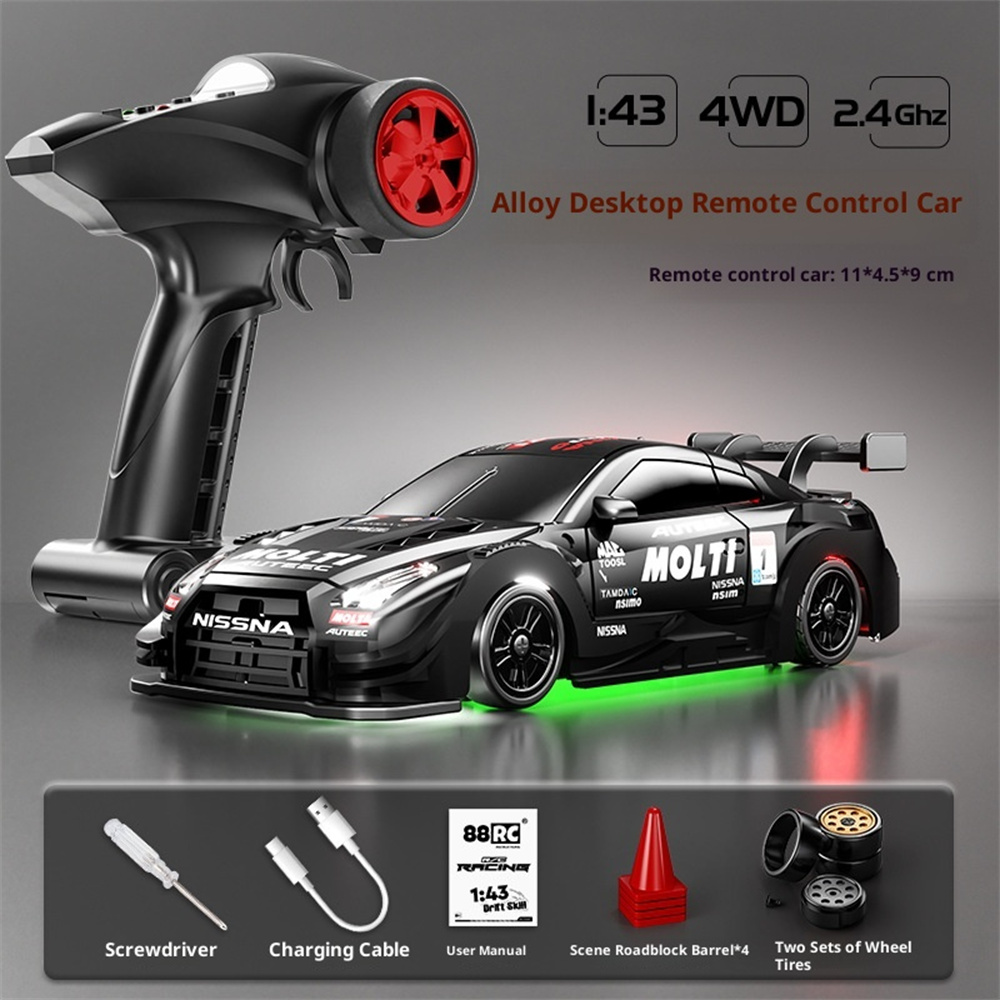 88RC RC43-A1 RTR 1/43 2.4G 4WD Drift RC Car Gyro Alloy Body Shell Desktop Full Proportional Mini Race LED Light Radio Control High-Speed Motor On-Road Racing Vehicle Model Boys Gifts Toys