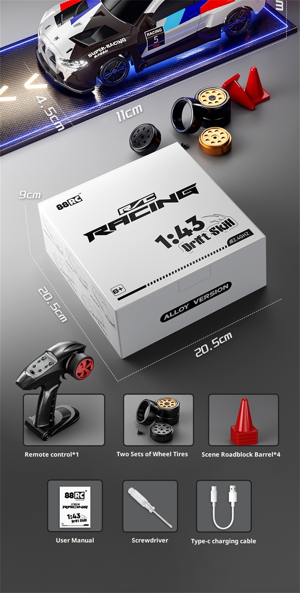 Car Size:11*4.5*9cm Box Size:20.6*20.6*9.2cm |