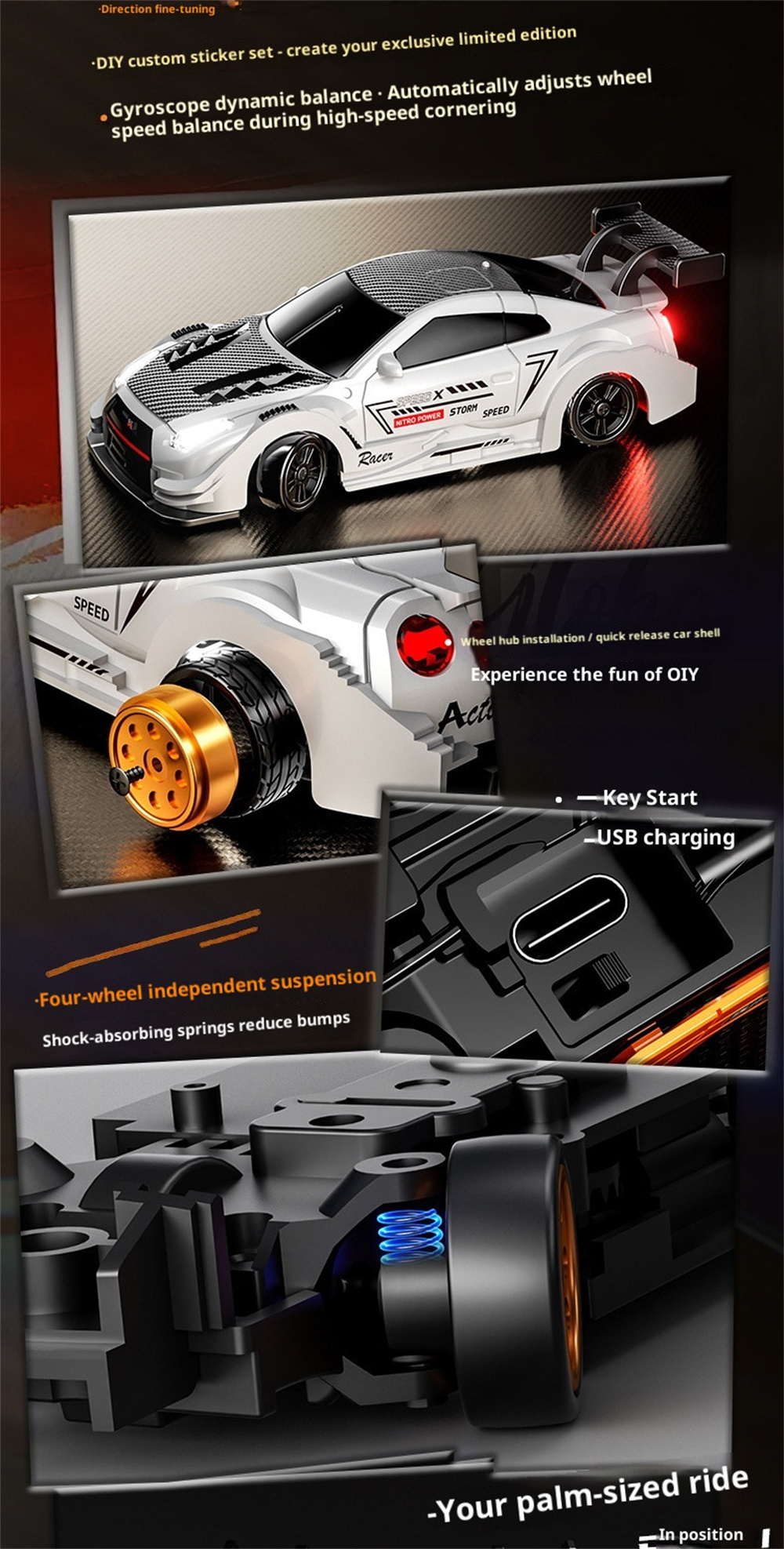 Featuring a four-wheel-drive system, this mini racing car offers superior speed and stability, ensuring you can tackle various terrains with ease.