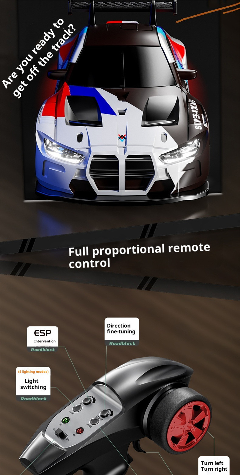 Enjoy precise control with a 2.4G remote controller that offers proportional throttle, giving you a more authentic driving experience.