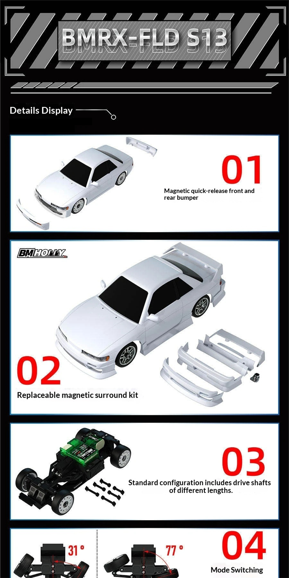 Brand:BM Racing BMHOBBY Item No.:BMRX-FLD S13 Scale:1/28 |