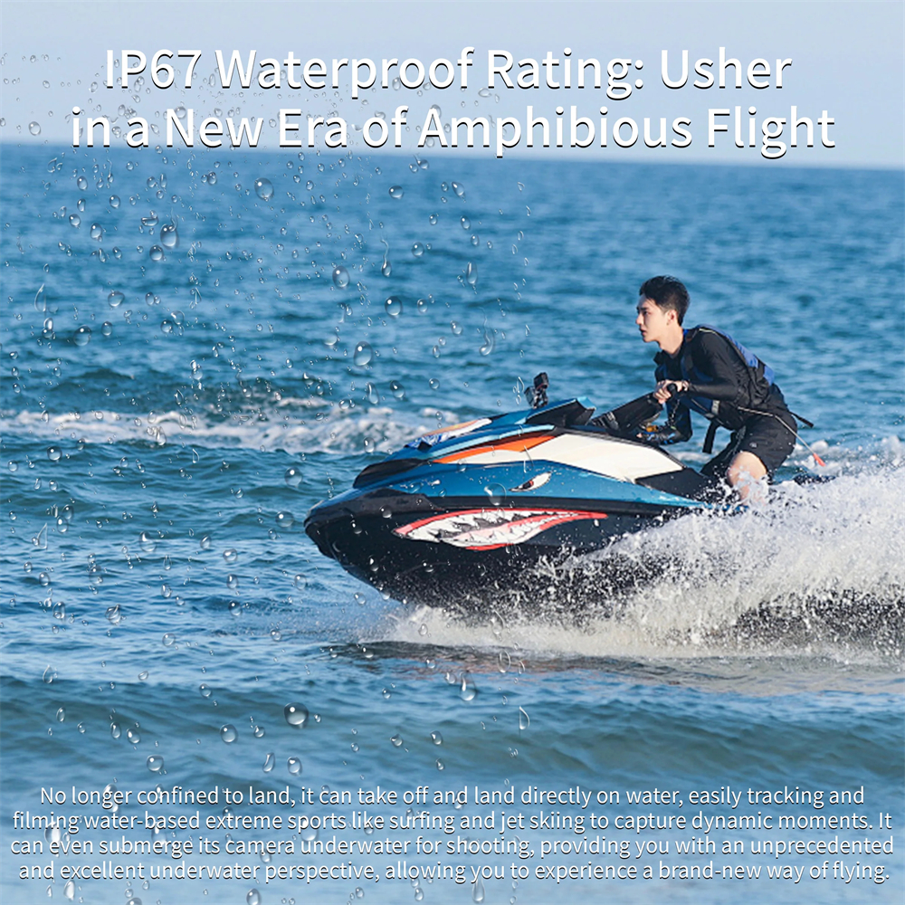 No longer confined to land, it can take off and land directly on water, easily tracking and filming water-based extreme sports like surfing and jet skiing to capture dynamic moments. It can even submerge its camera underwater for shooting, providing you with an unprecedented and excellent underwater perspective, allowing you to experience a brand-new way of flying.