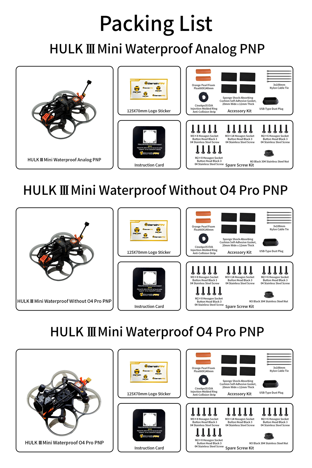 In the world of FPV racing drones, we have always believed that true freedom should not be limited by the environment. DarwinFPV HULK III Mini comes with the ultimate pursuit of flight. It is not only a high-performance racing drone, but also a reliable companion for you to explore the unknown and record wonderful moments. From speeding on water to exploring underwater, from high-definition shooting to high-speed flight, it will meet all your expectations for a racing drone, allowing you to experience unparalleled fun in every flight.