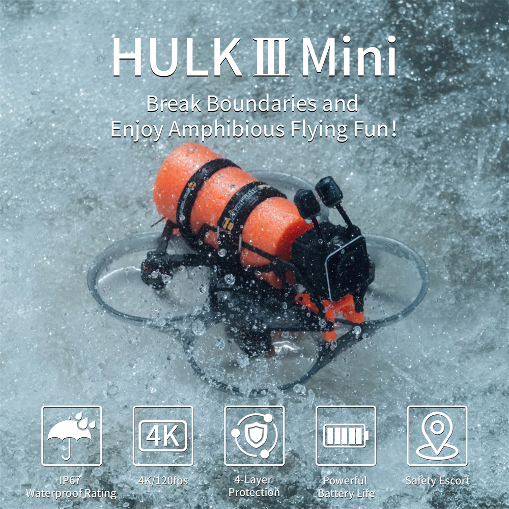 DarwinFPV HULK III Mini Waterproof FPV Racing Drone: Break Boundaries and Enjoy Amphibious Flying Fun!