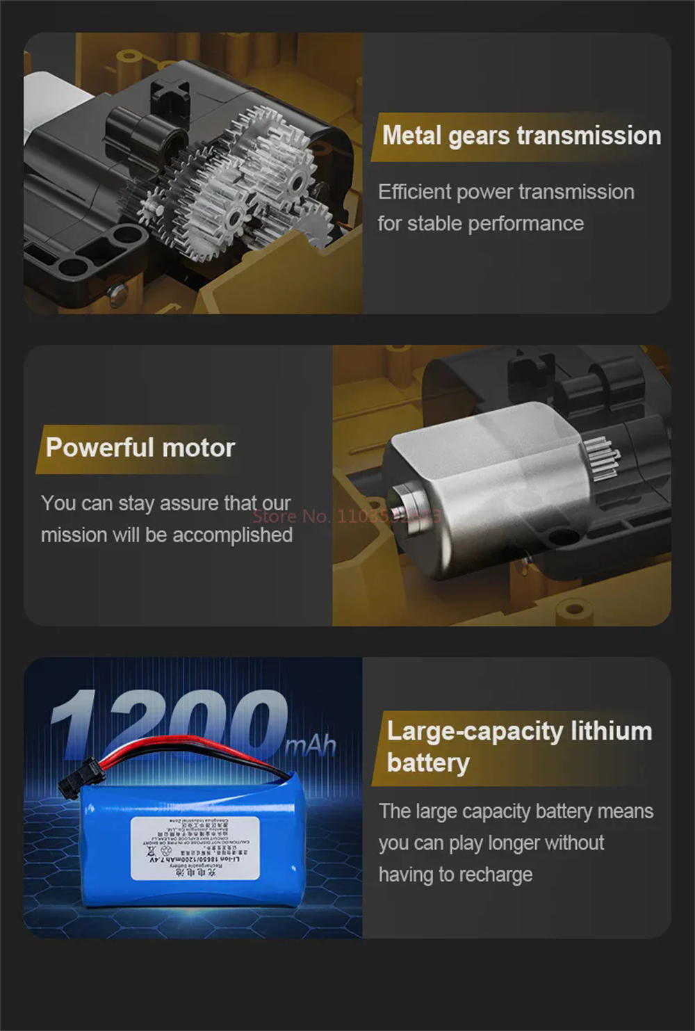 Battery | Battery for the Hauler:7.4V 1200mAh Li-ion battery(included) Battery Charging Time:About 4 hours Battery Playing Time:Approx.30 minutes |