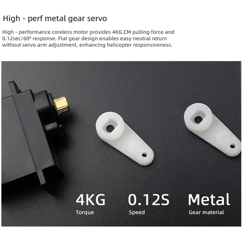 4 > High-Efficiency Powertrain for 3D Flight: Powered by a 3508-class high-torque brushless motor and a 32-bit 60A all-metal ESC, this helicopter is built for aggressive 3D maneuvers. The high-voltage 16V system ensures consistent power output, lightnings-fast throttle response, and outstanding speed control throughout the entire flight.