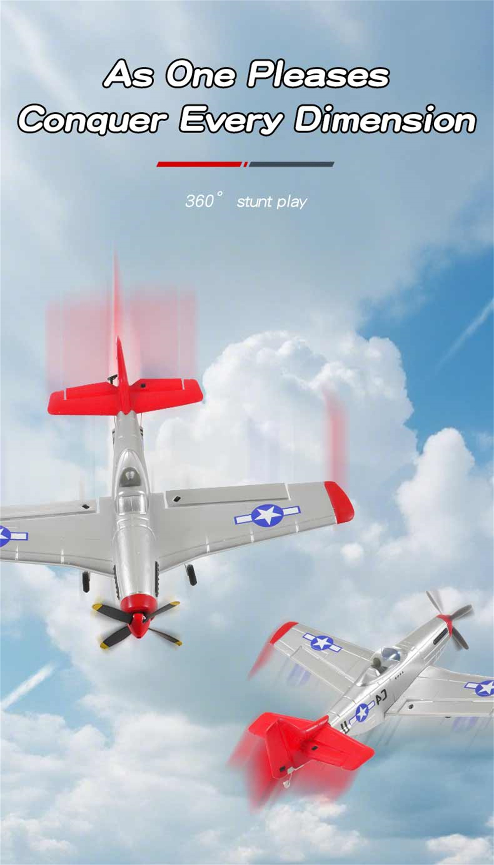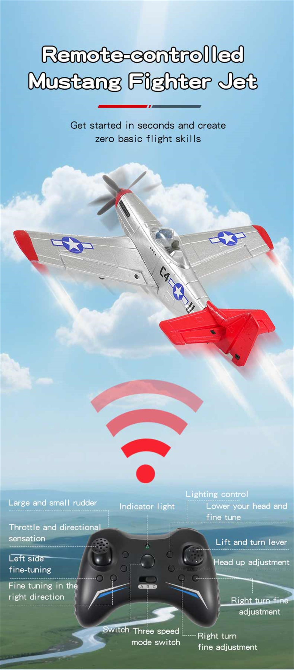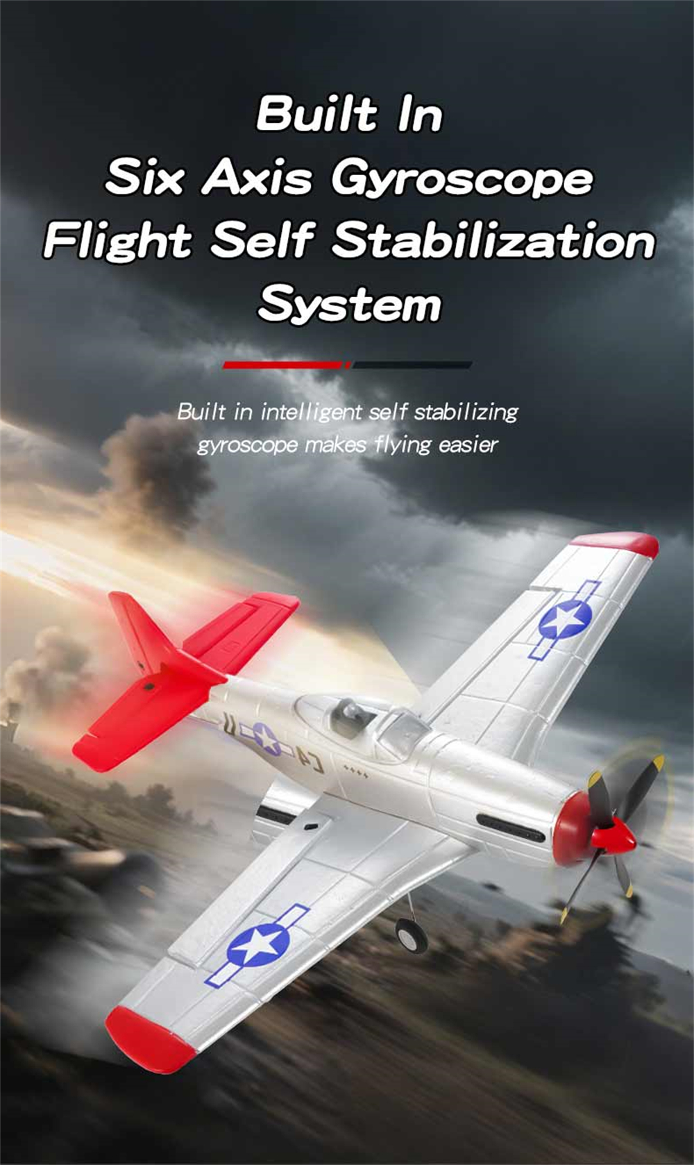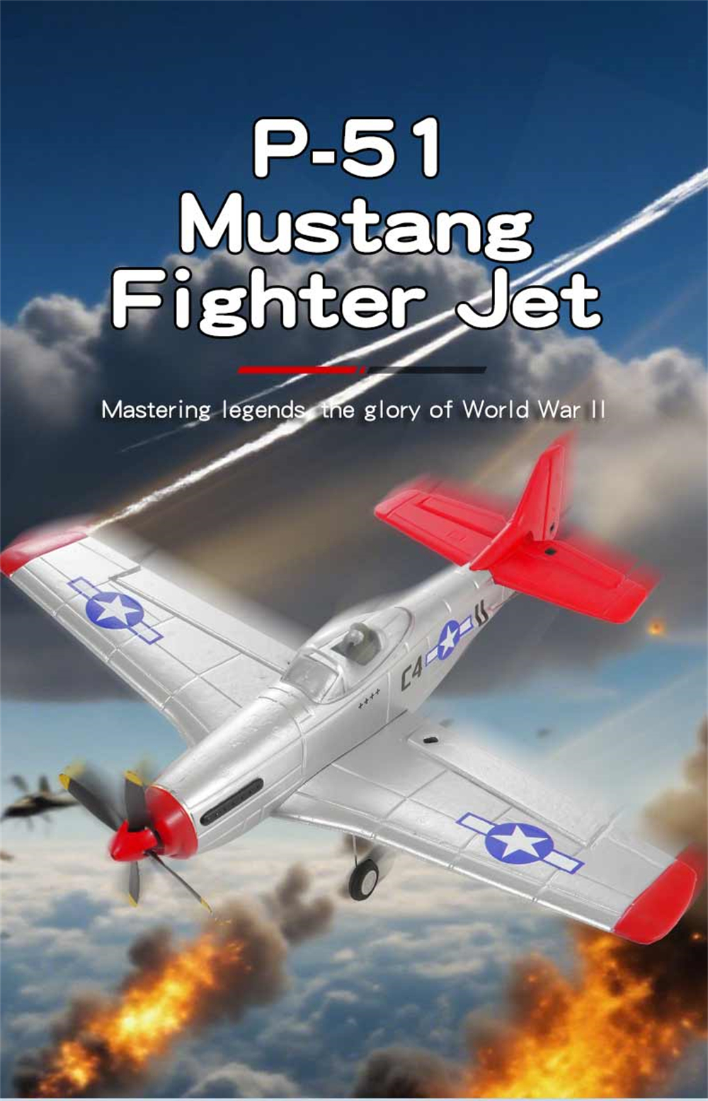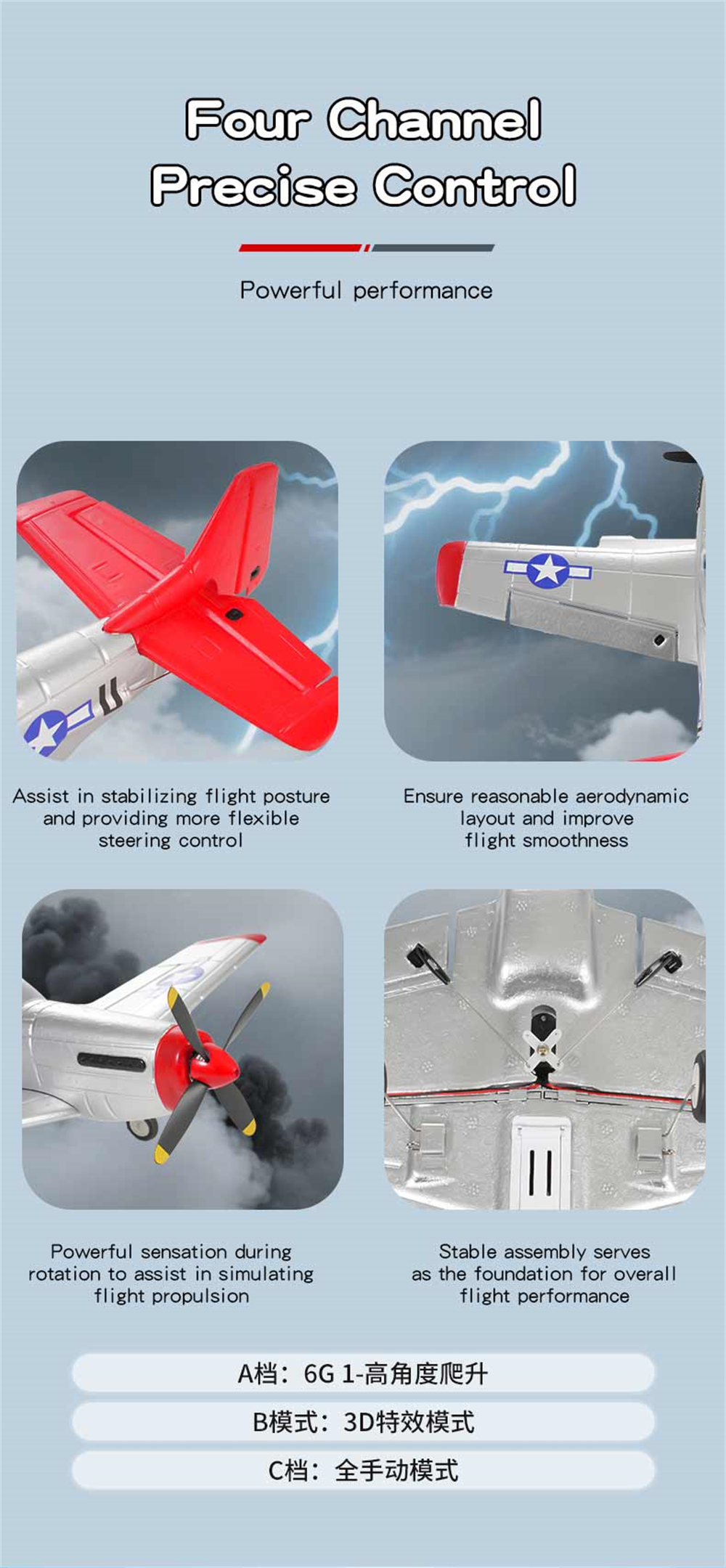 1. P51 Mustang fighter jet, classic design, high fidelity, four-channel design for enhanced control;