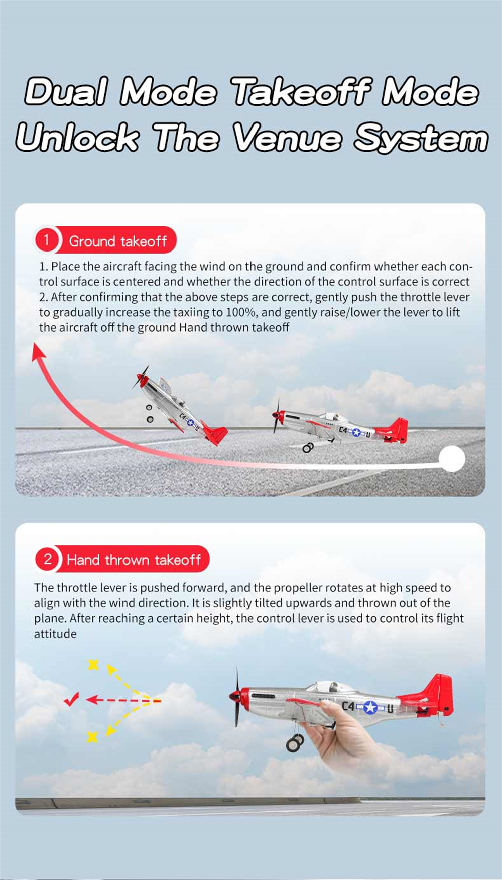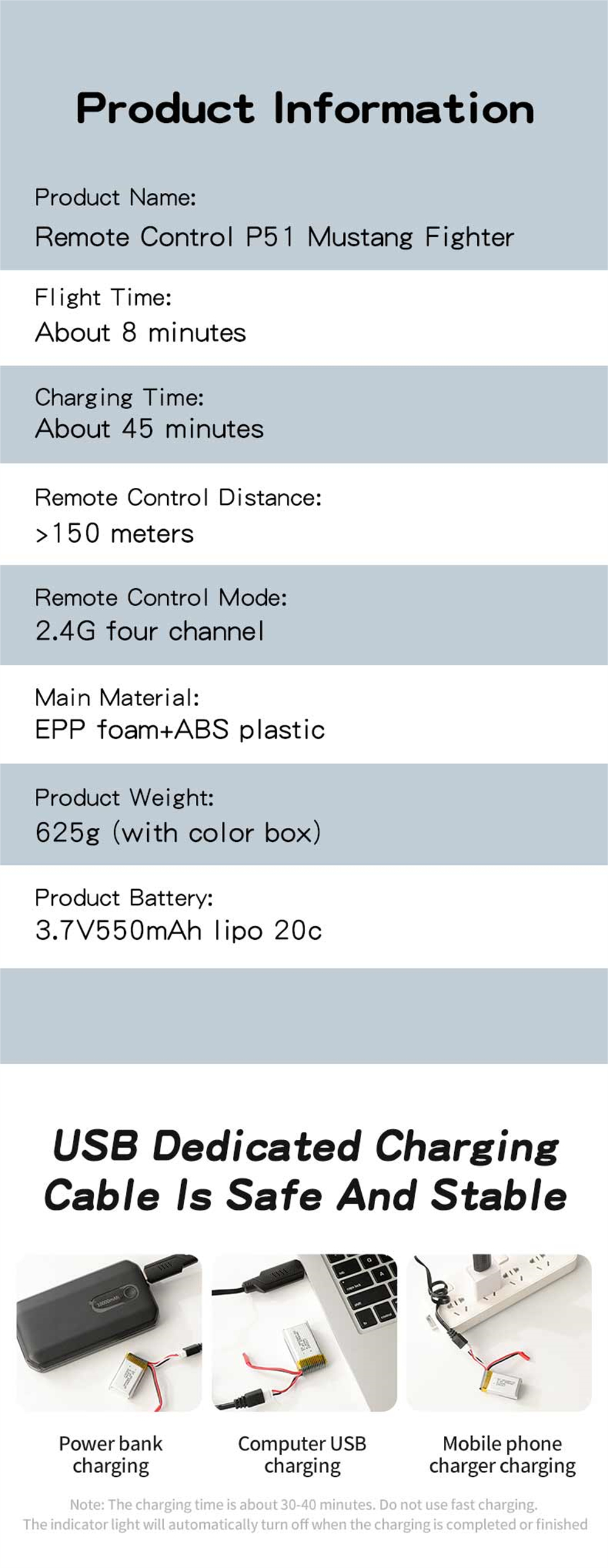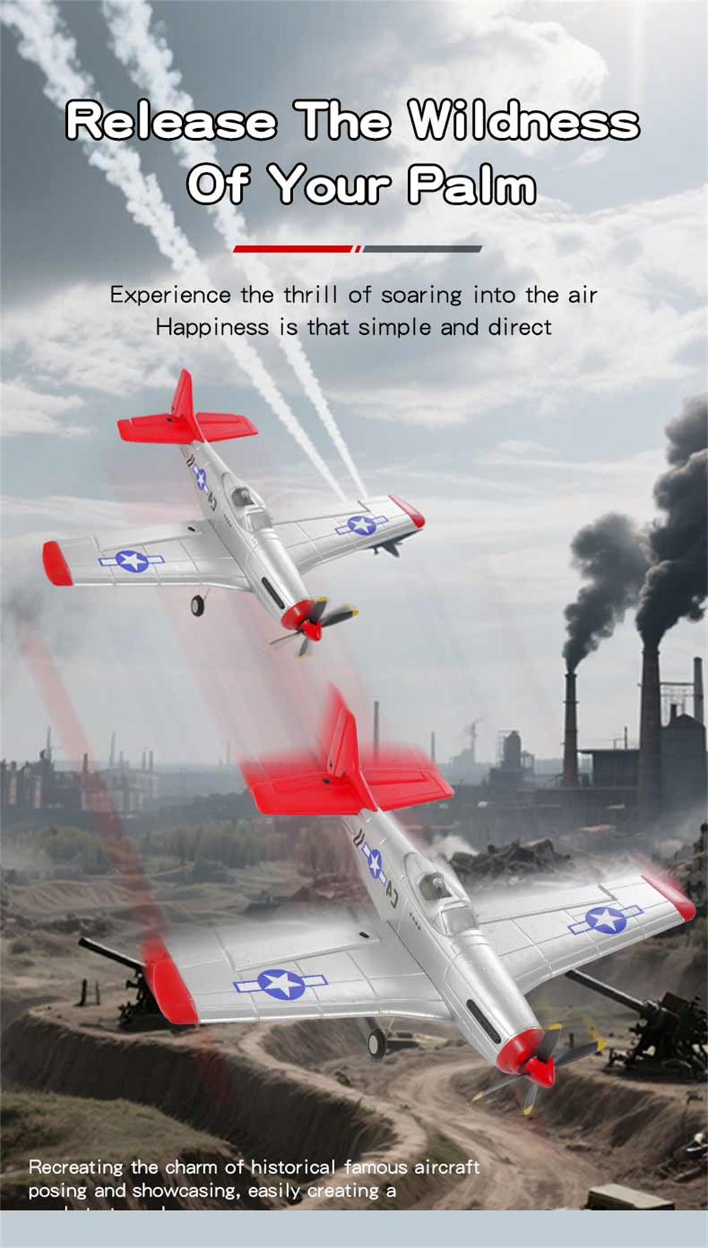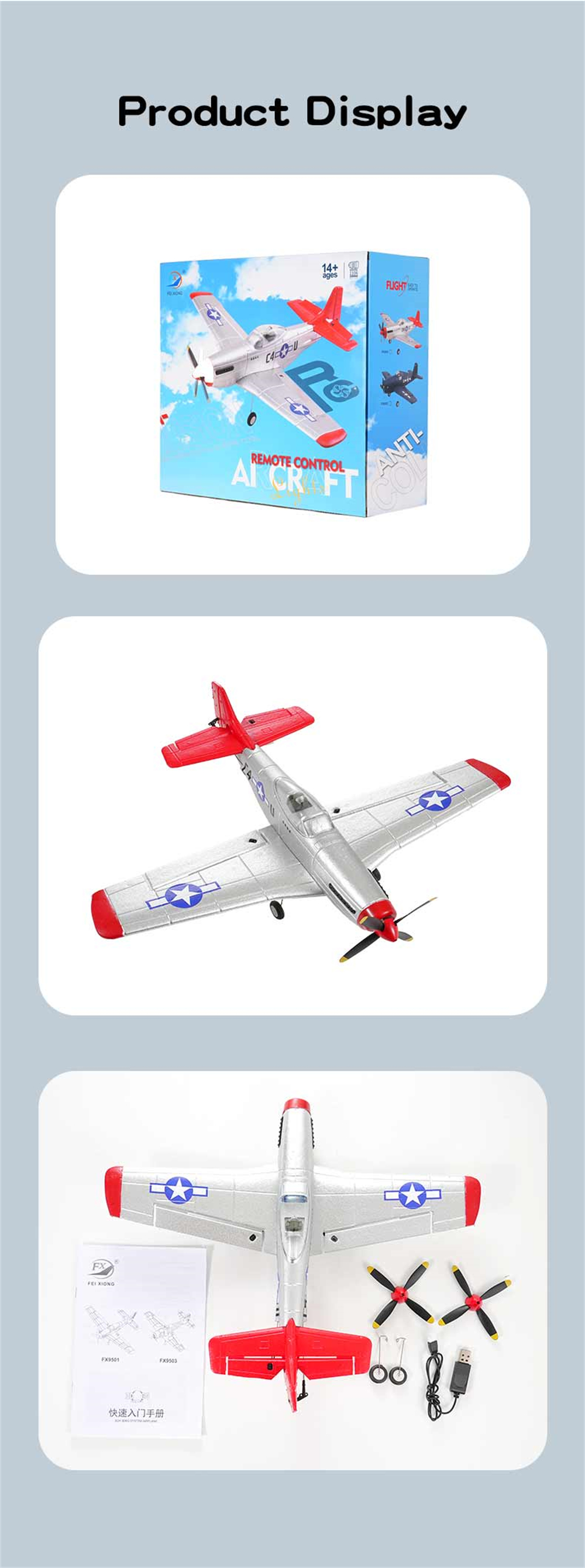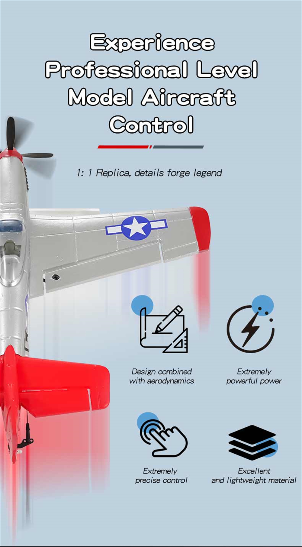 1. P51 Mustang fighter jet, classic design, high fidelity, four-channel design for enhanced control;