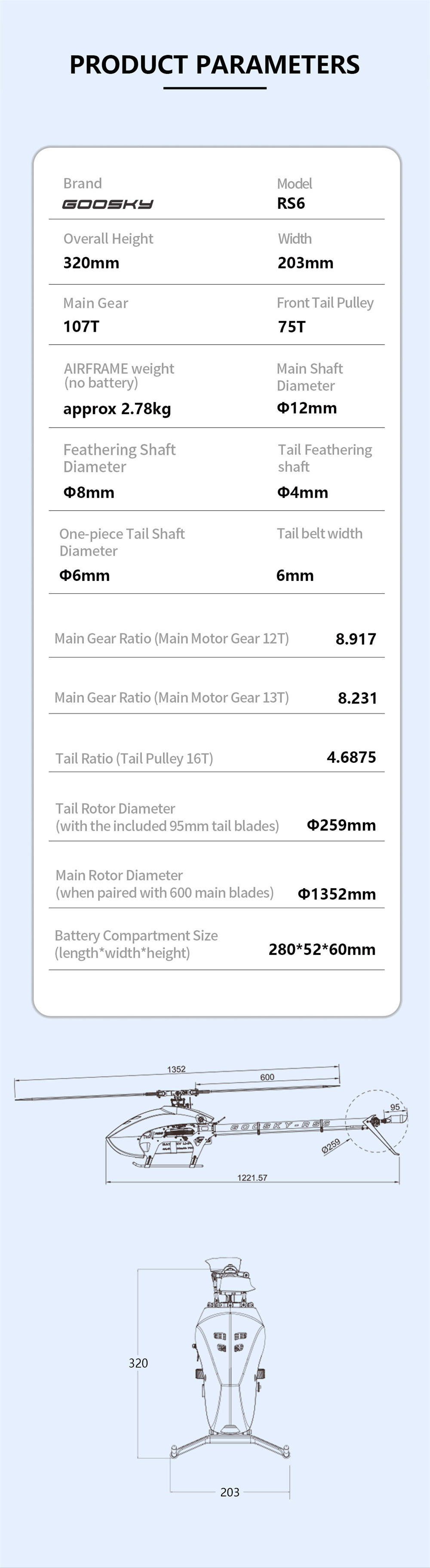 Main Rotor Diameter (when paired with 600 main blades): φ1352mm