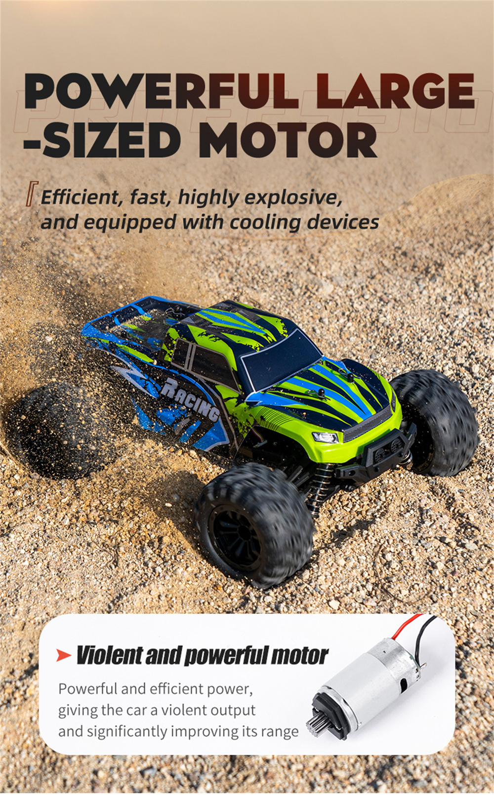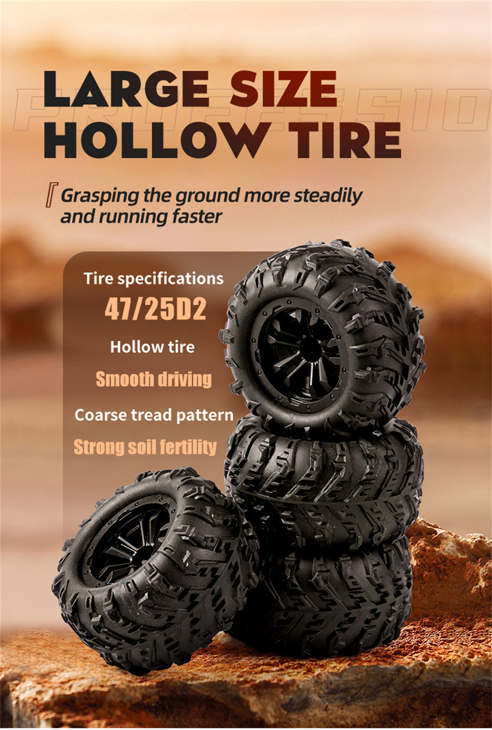 3.Large Size hollow tires,strong grip,smooth driving
