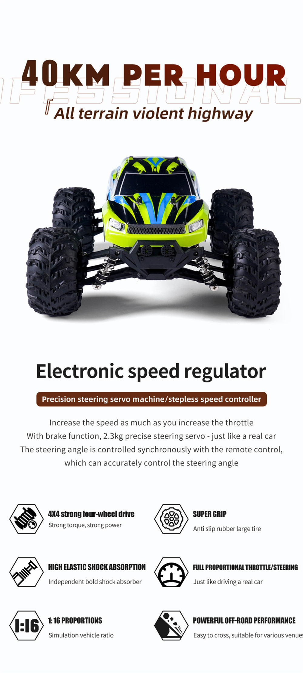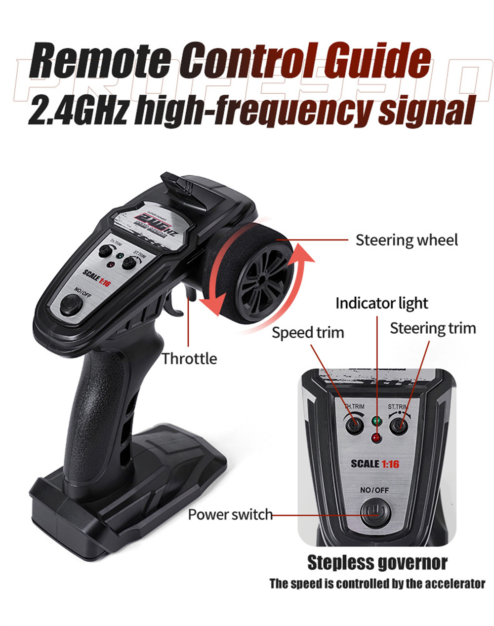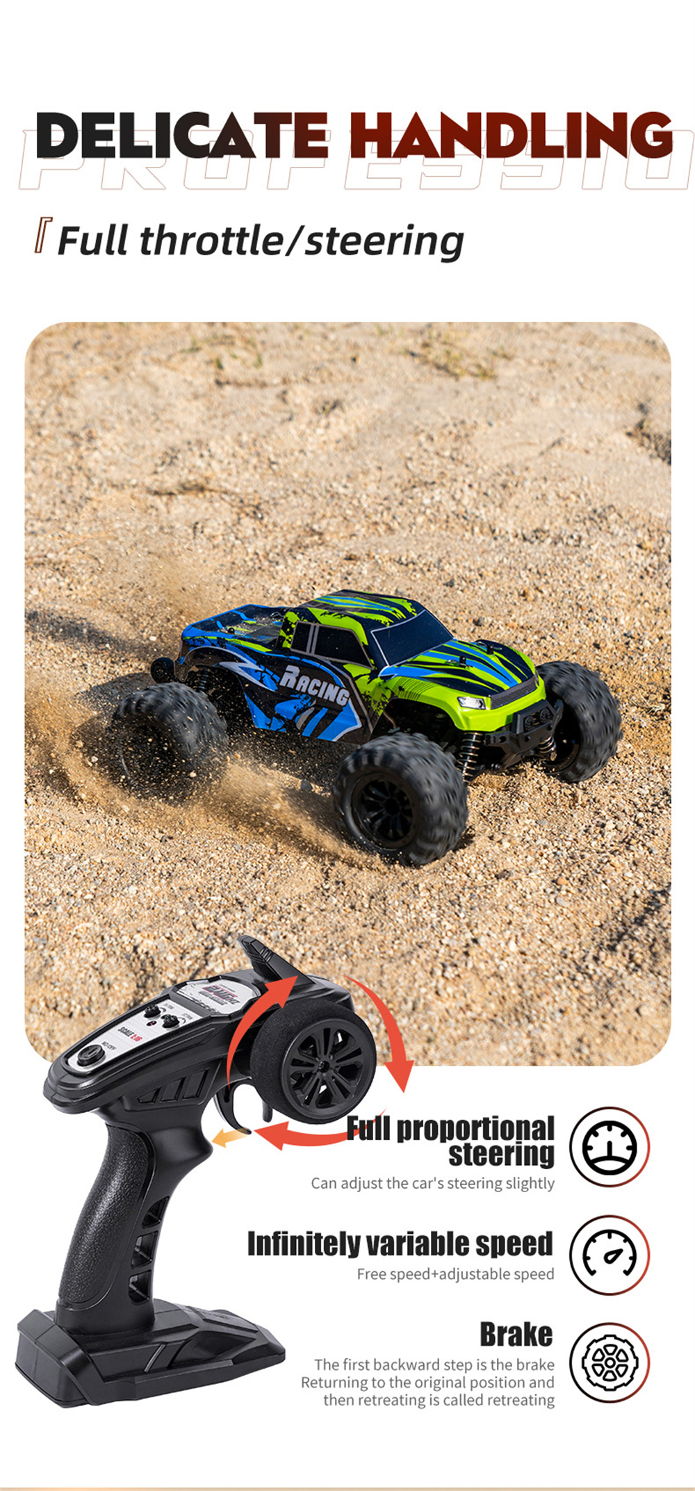 1.2.4G high frequency full proportional synchronous control function, proportional forward and backward/proportional left and right turning/braking