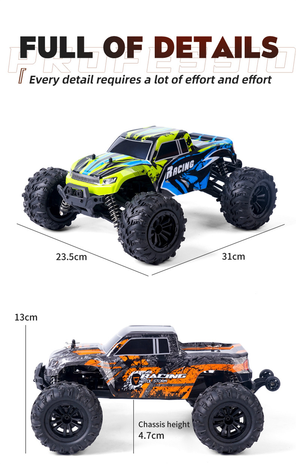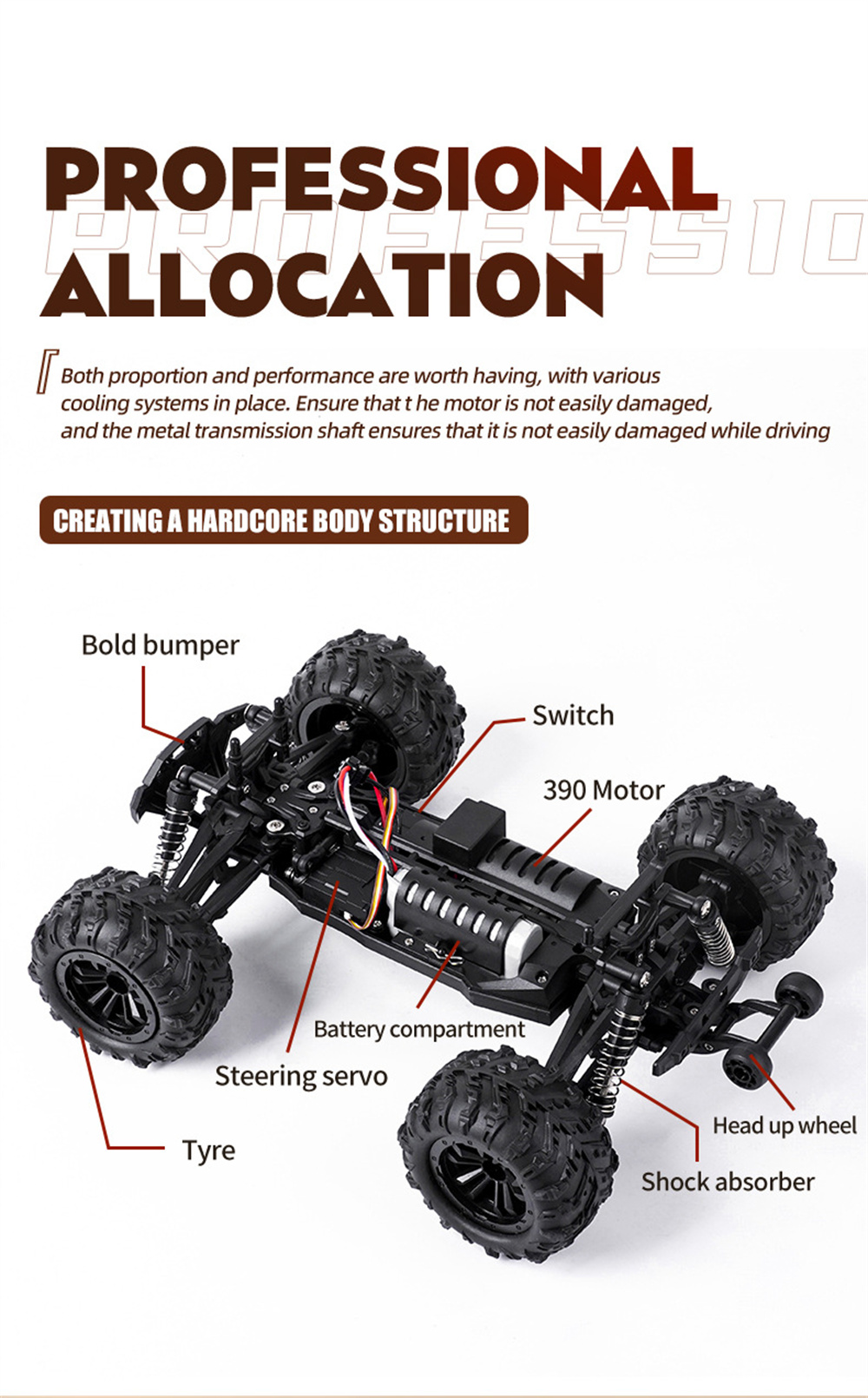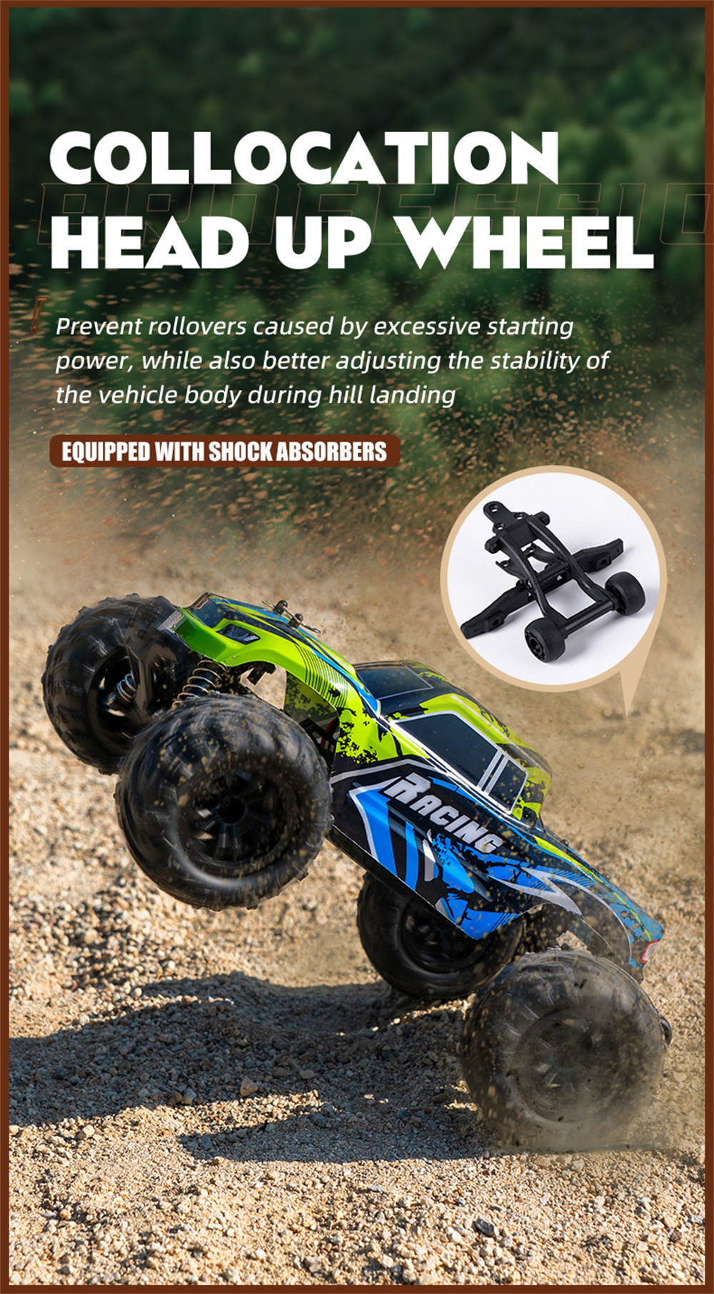 8.Collocation head up wheel,prevent rollovers caused by excessive starting power, while also better adjusting the stability of the vehicle body during hill landing