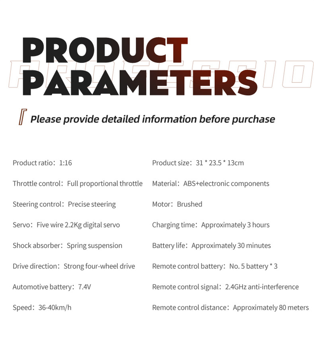 Car Size:31*23.5*13cm Box Size:37.3*15*24.5cm |