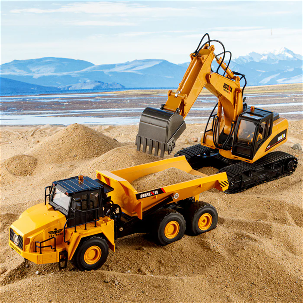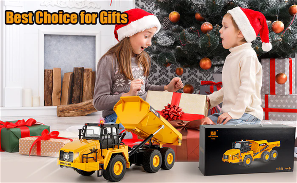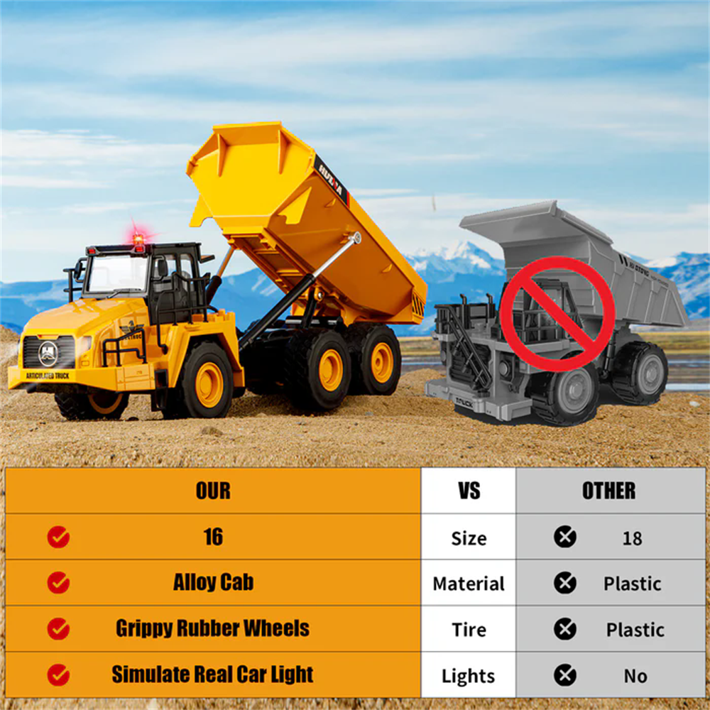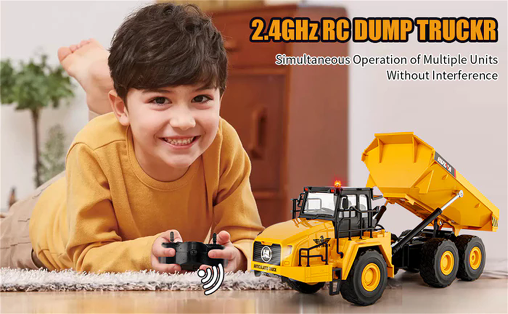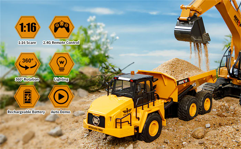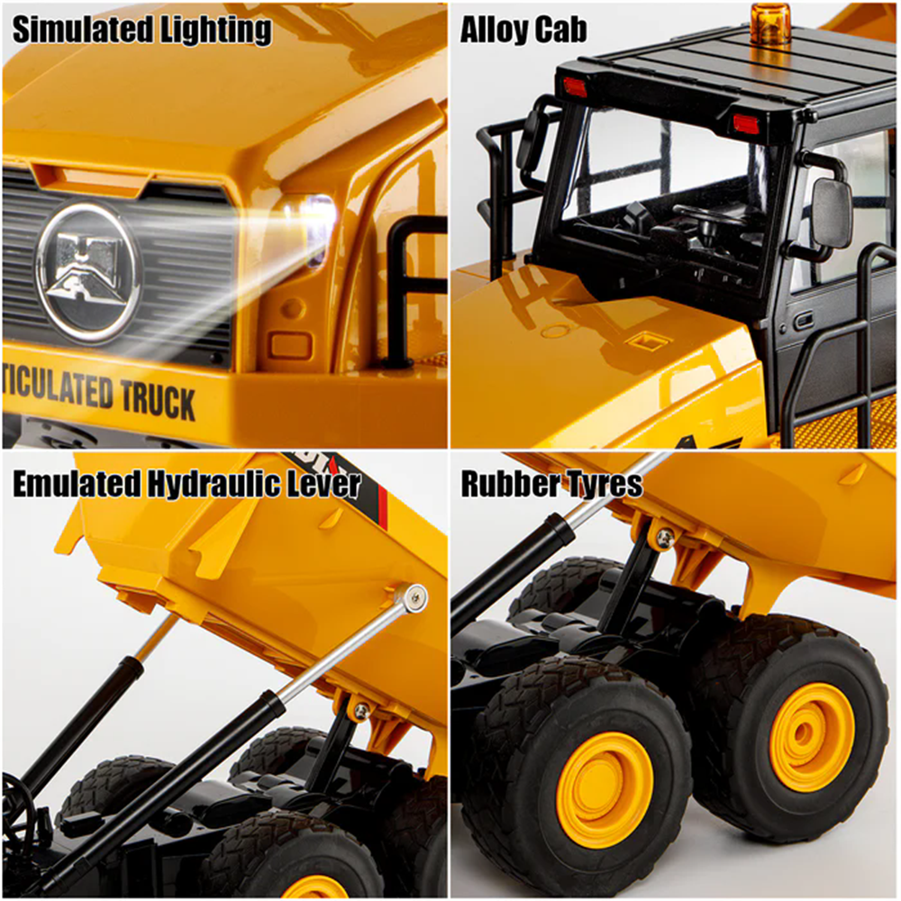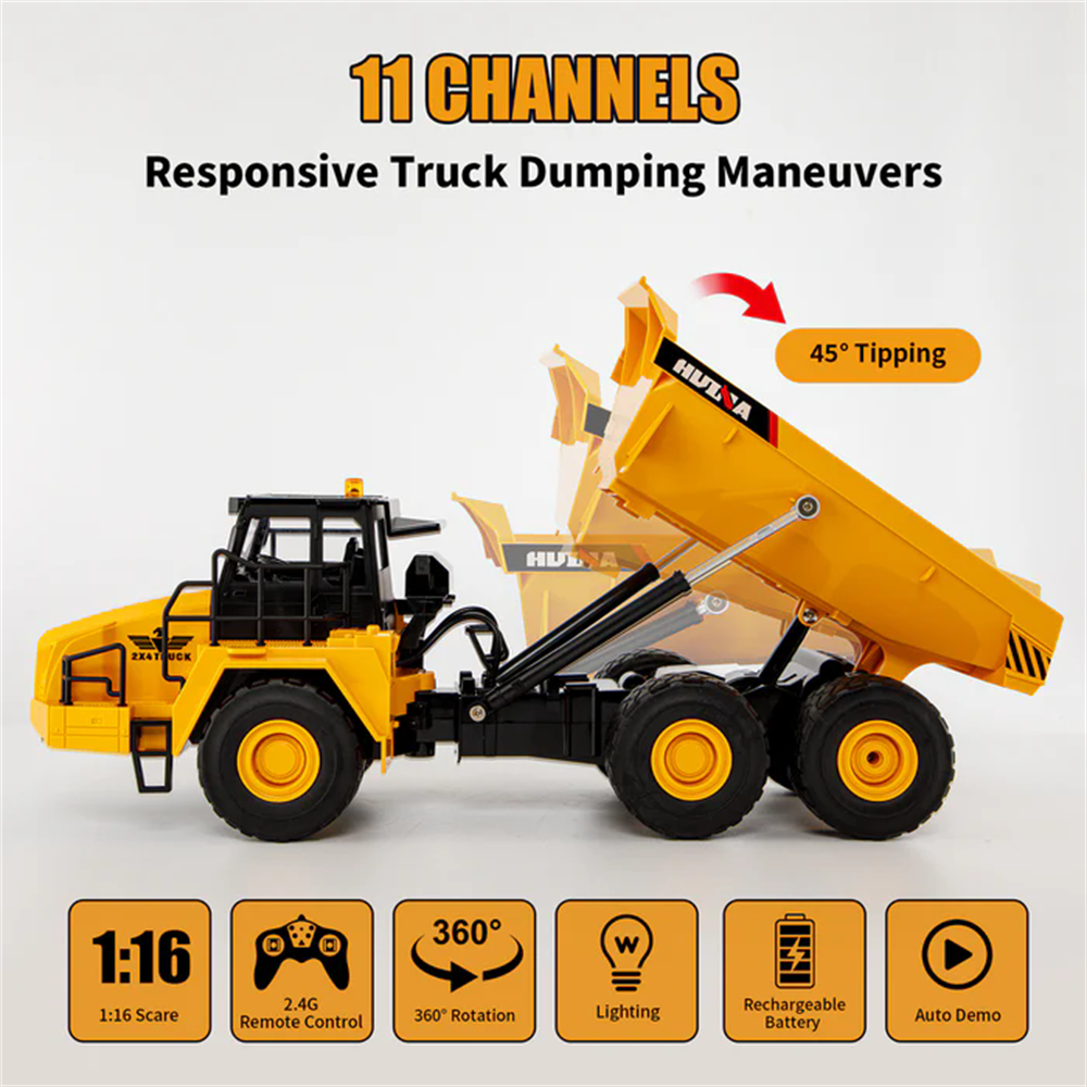 Huina Toys 1553 RTR 1/16 2.4G 11CH RC Car Dump Truck LED Light 360 Rotation Alloy Cab Engineering Remote Control Vehicles Desktop Model Collection Gift For Boys