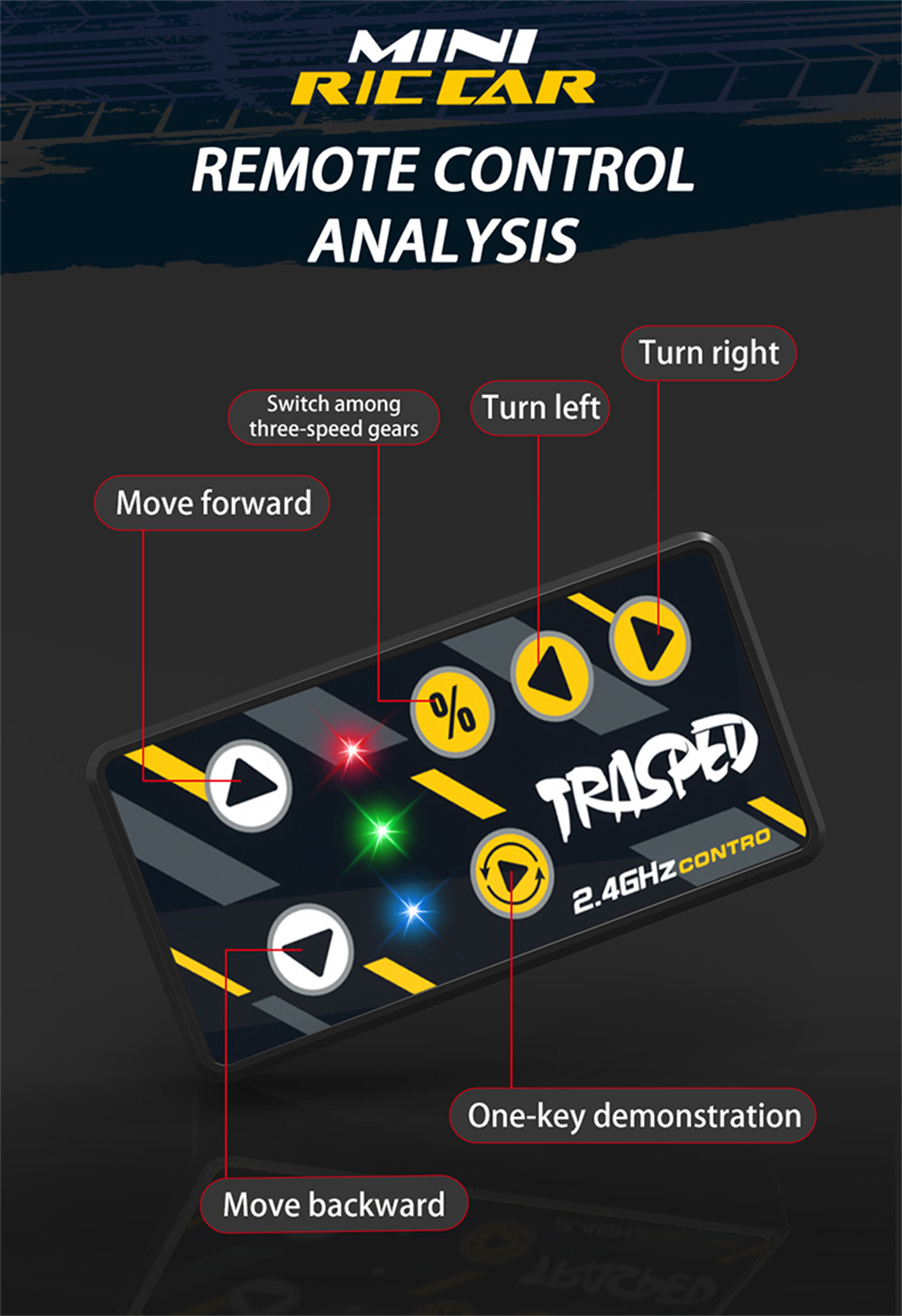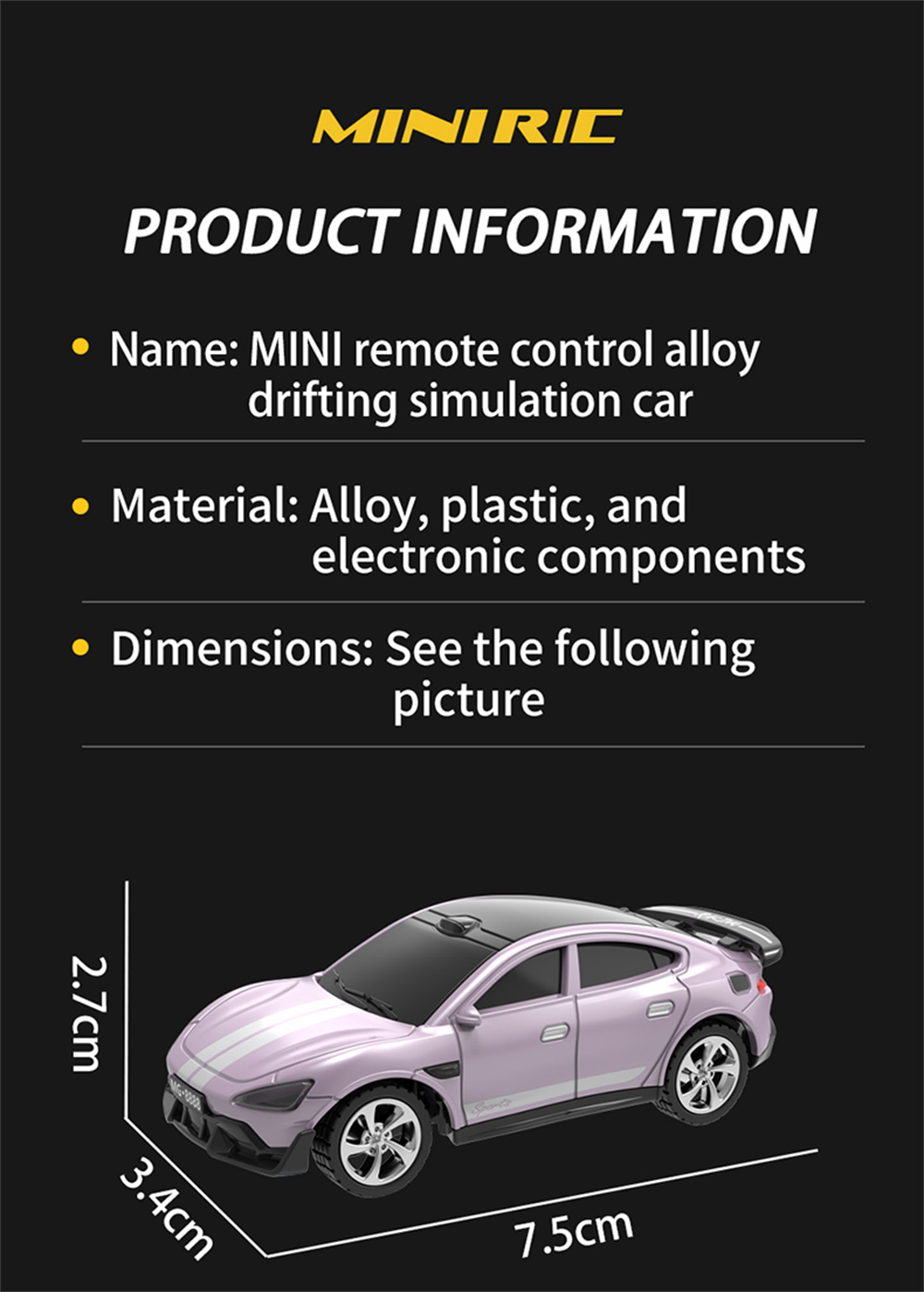With dimensions of 2.95×1.33×1.06 inches and a net weight of 49g this RC car is portable and easy to carry, making it suitable for indoor and outdoor use.