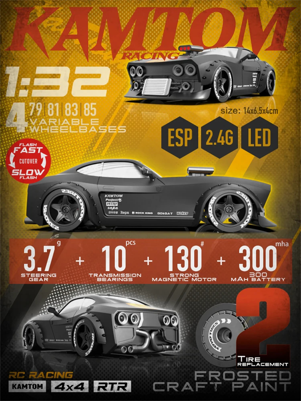 2.Adjustable Wheelbase: Four variable wheelbases (79mm, 81mm, 83mm, and 85mm) allow for customized racing setups, ensuring perfect handling.