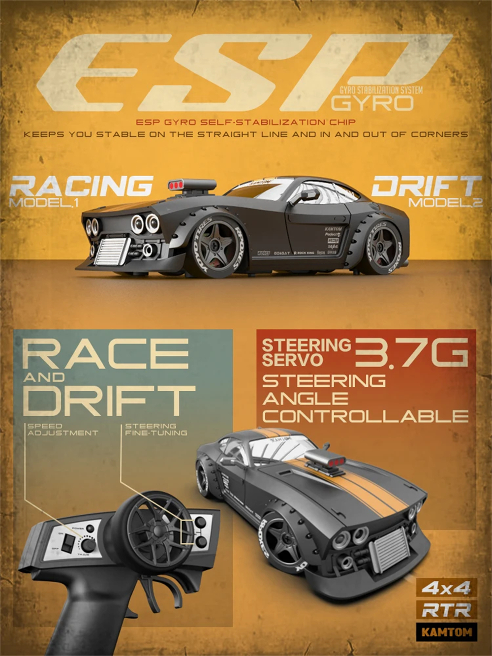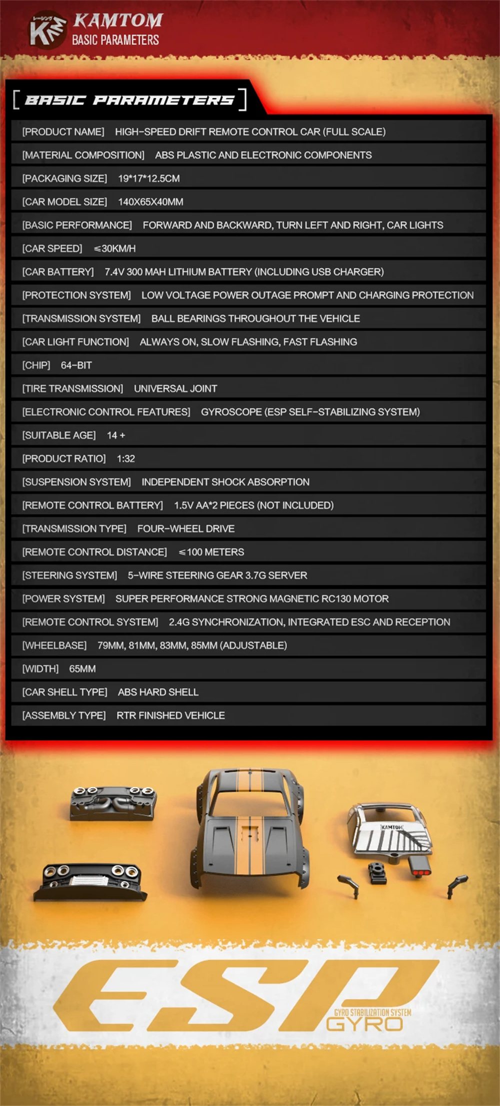 3.Advanced Gyro System: The built-in ESP gyro self-stabilization system keeps the car stable, even at high speeds, and during sharp turns.