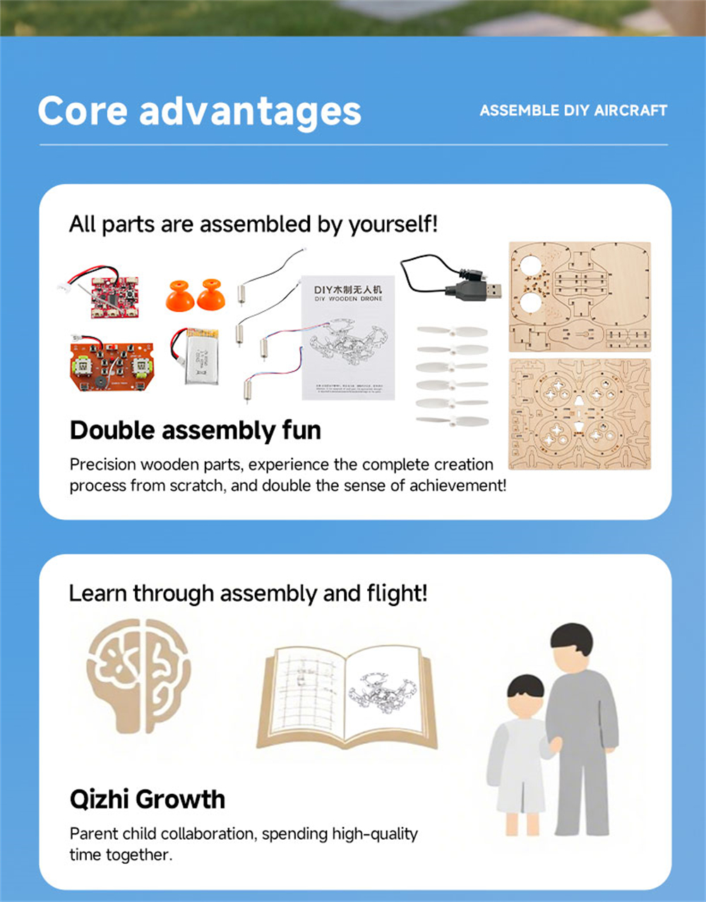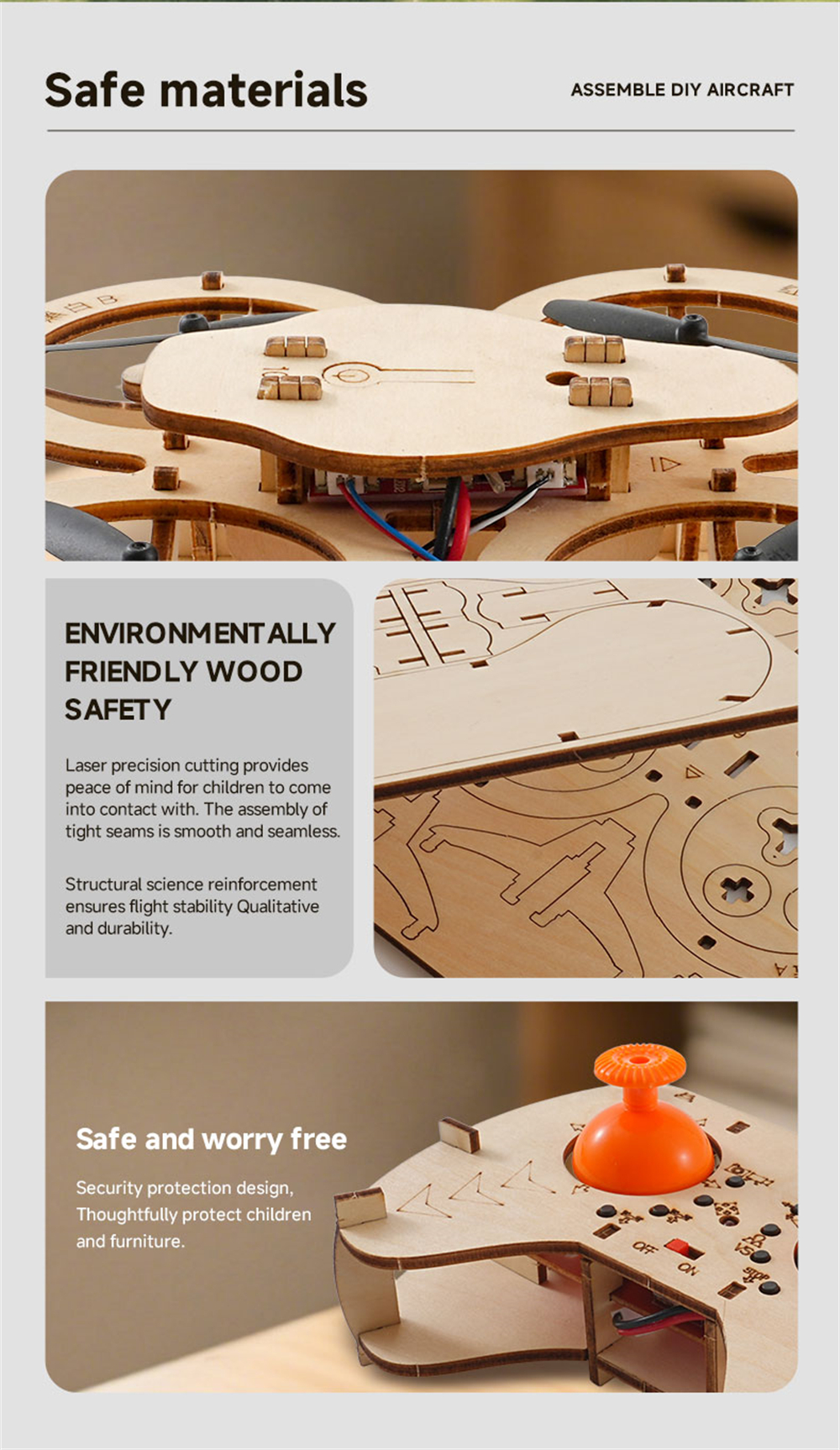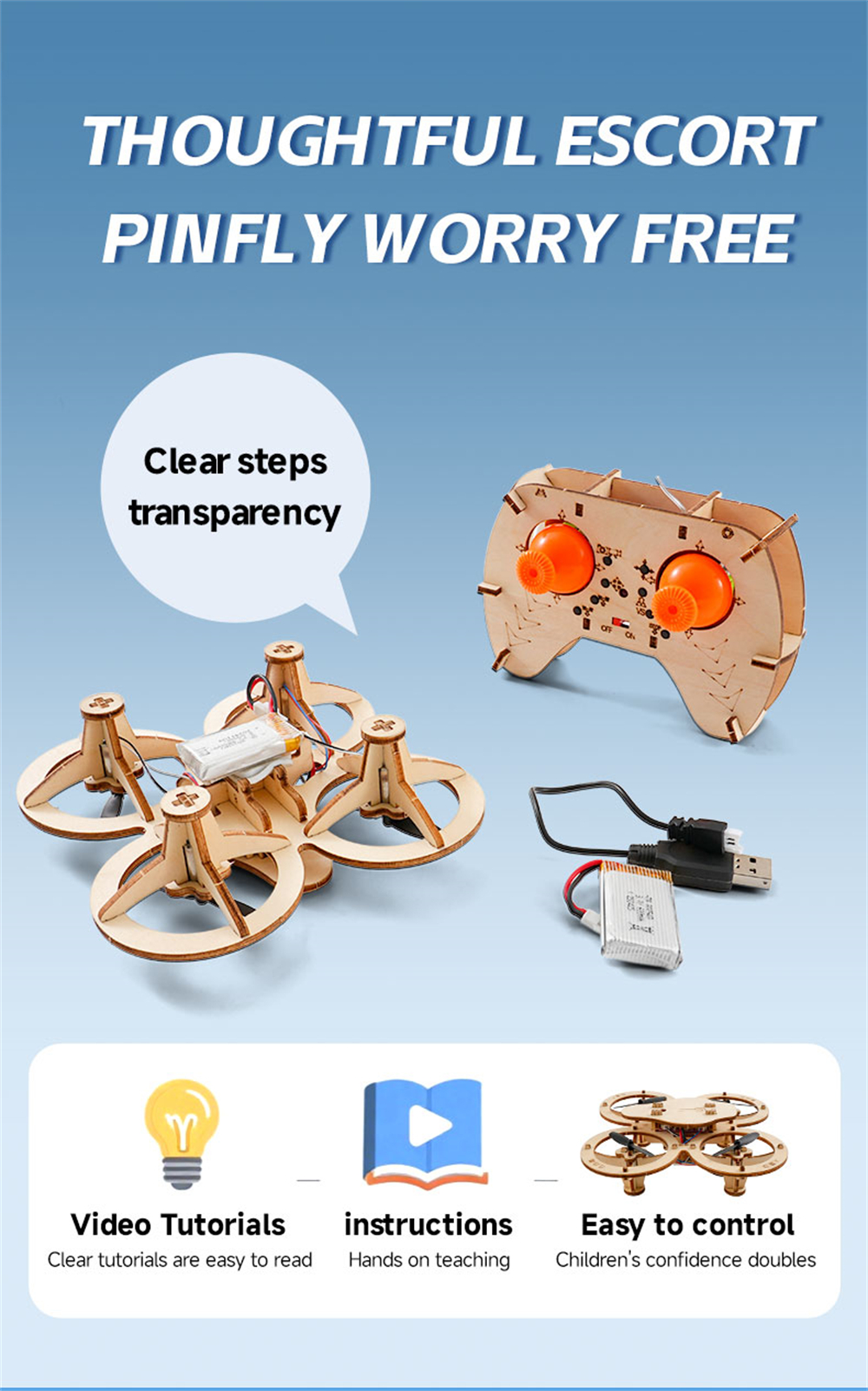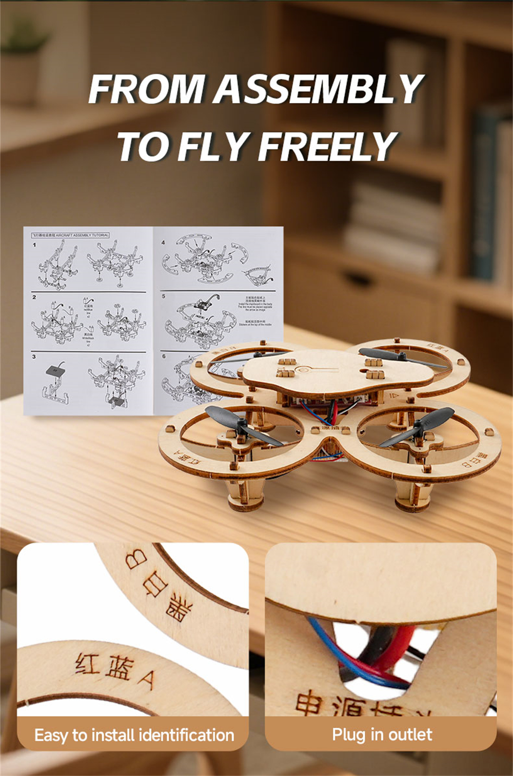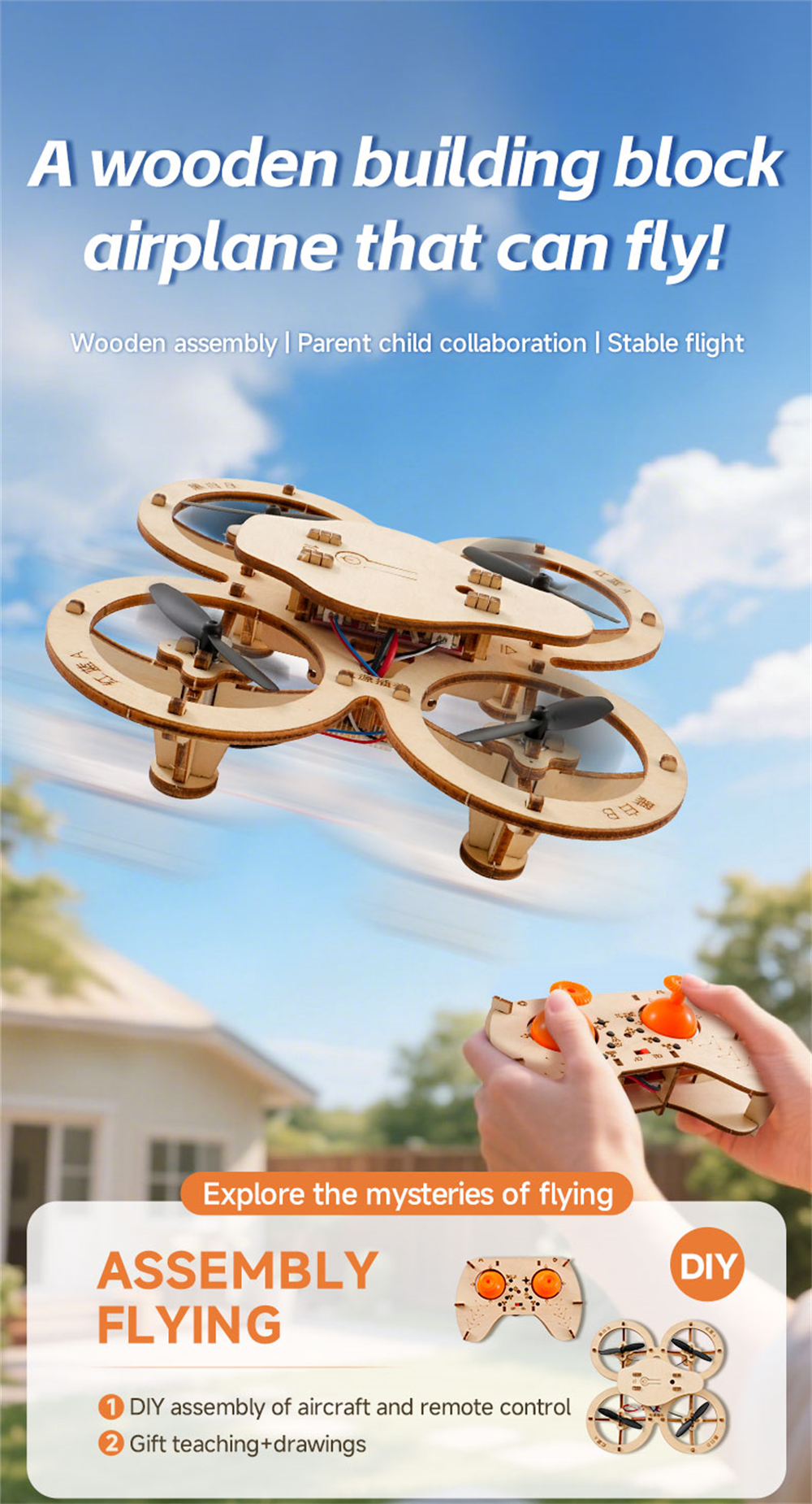 LKHRC DIY Wooden Building Blocks Flying Toys Assembled KIT Remote Control Aircraft Training RC Drone Quadcopter Air Pressure High Hold Mode