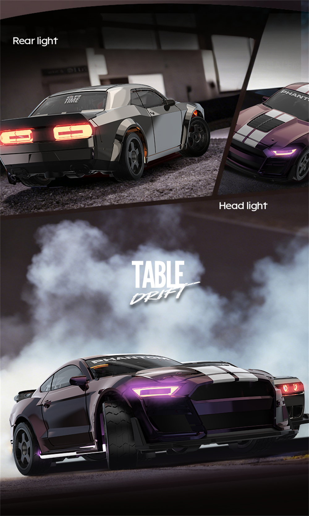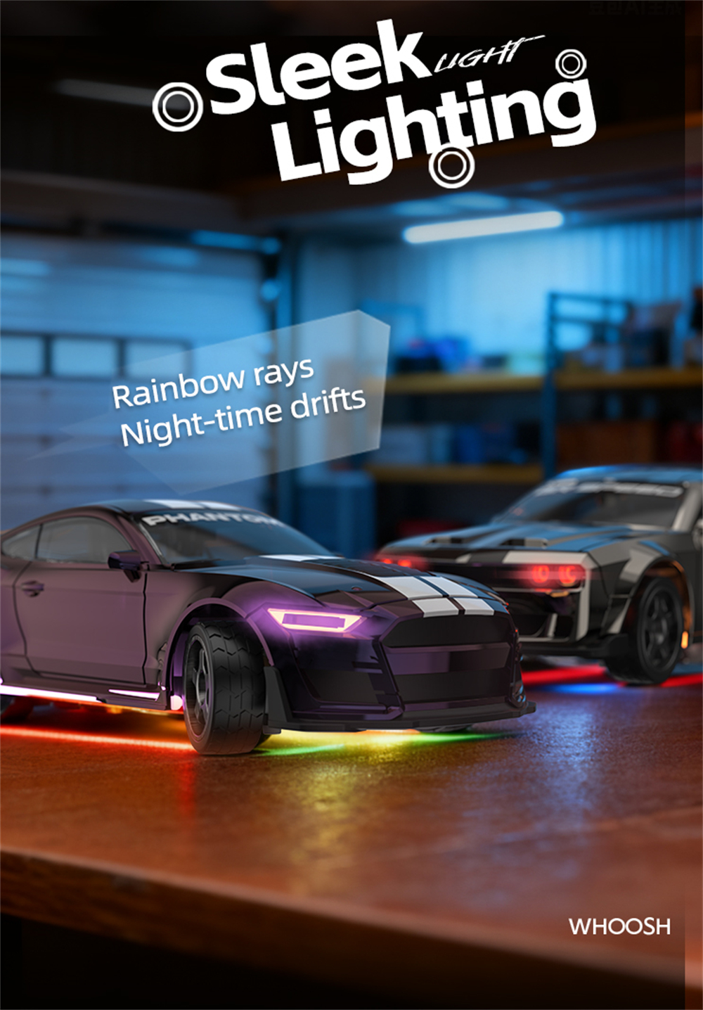 This premium MINI drift car features a nylon chassis and four-wheel drive. The design is a 1:43 scale of the real car, with the exterior completed to the actual proportions. It comes with a 2.4G four-way remote control, front and rear lights, and ambient lighting underneath the car. It has a continuous battery life of 20-25 minutes and includes a complete set of drift tires for replacement. It also features obstacle courses and a remote control distance of 25-30 meters.