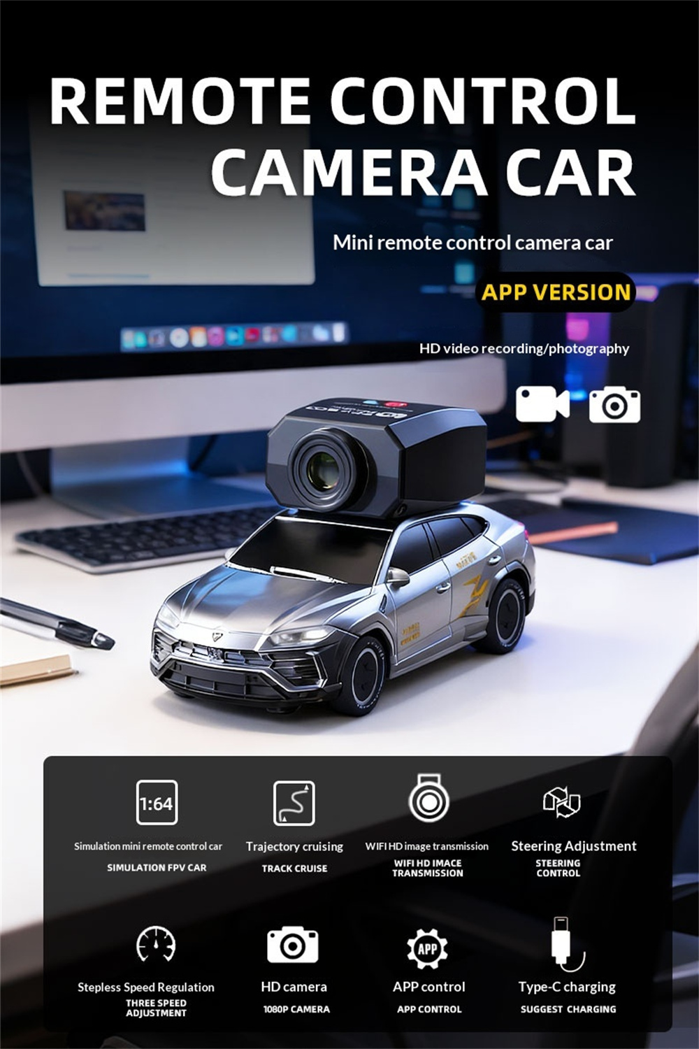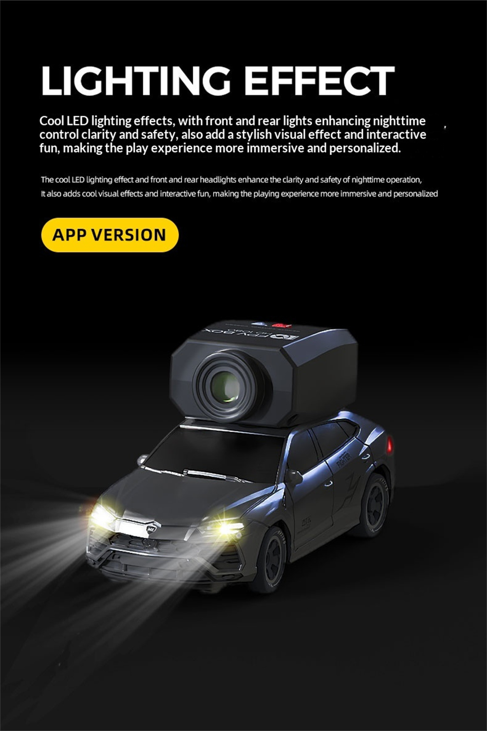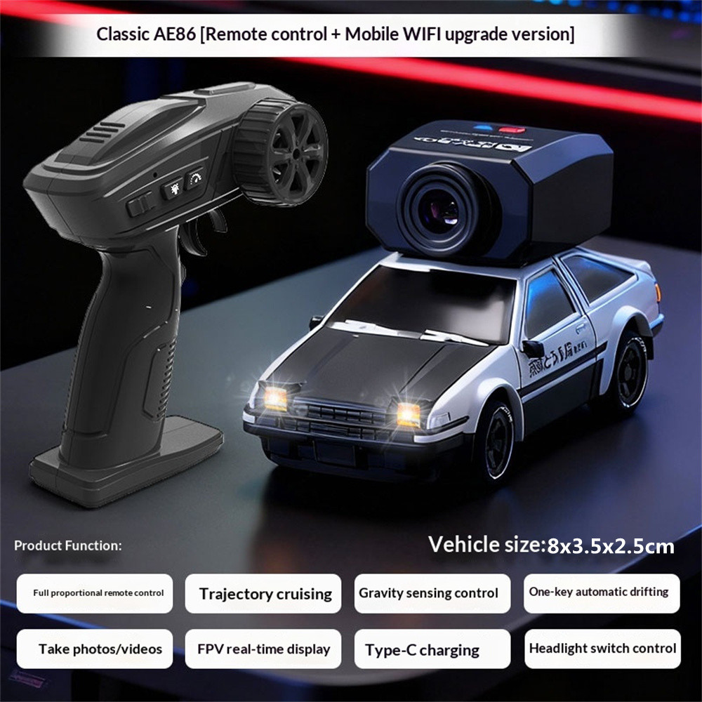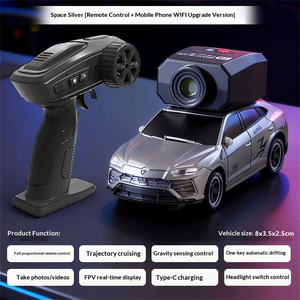 1. 1/64 scale 4WD drift car, full-scale control system, 720P magnetic HD camera, real-time video and photo recording via app.