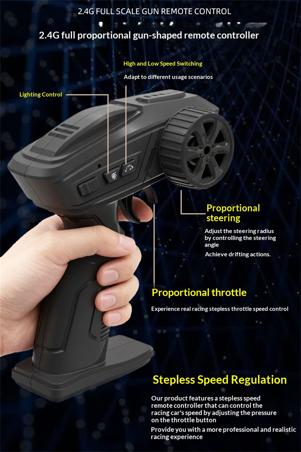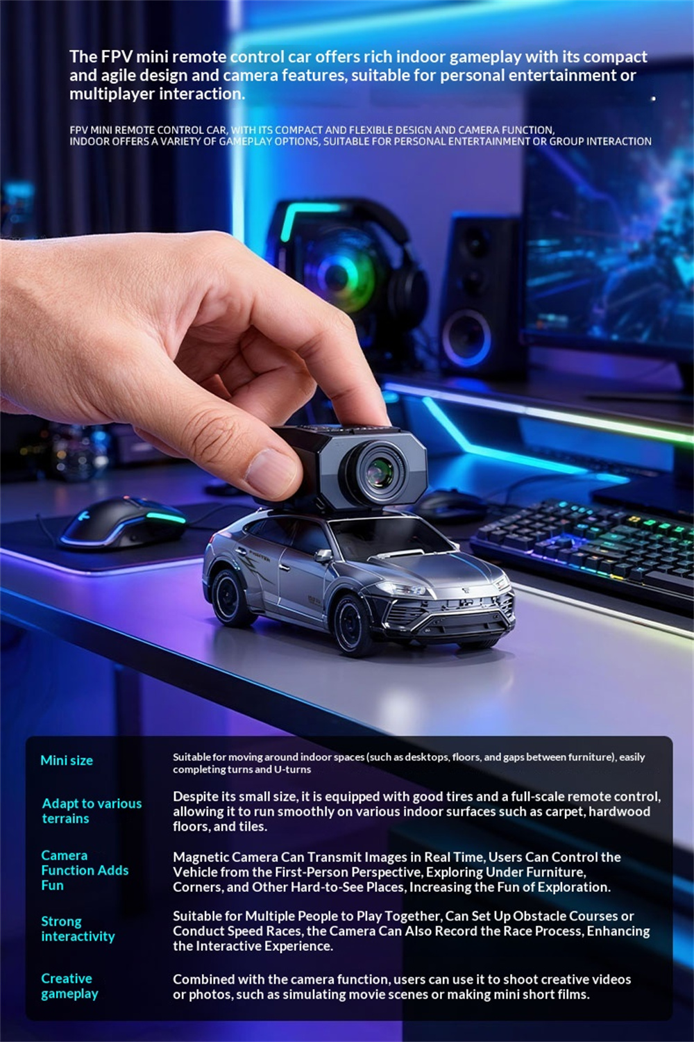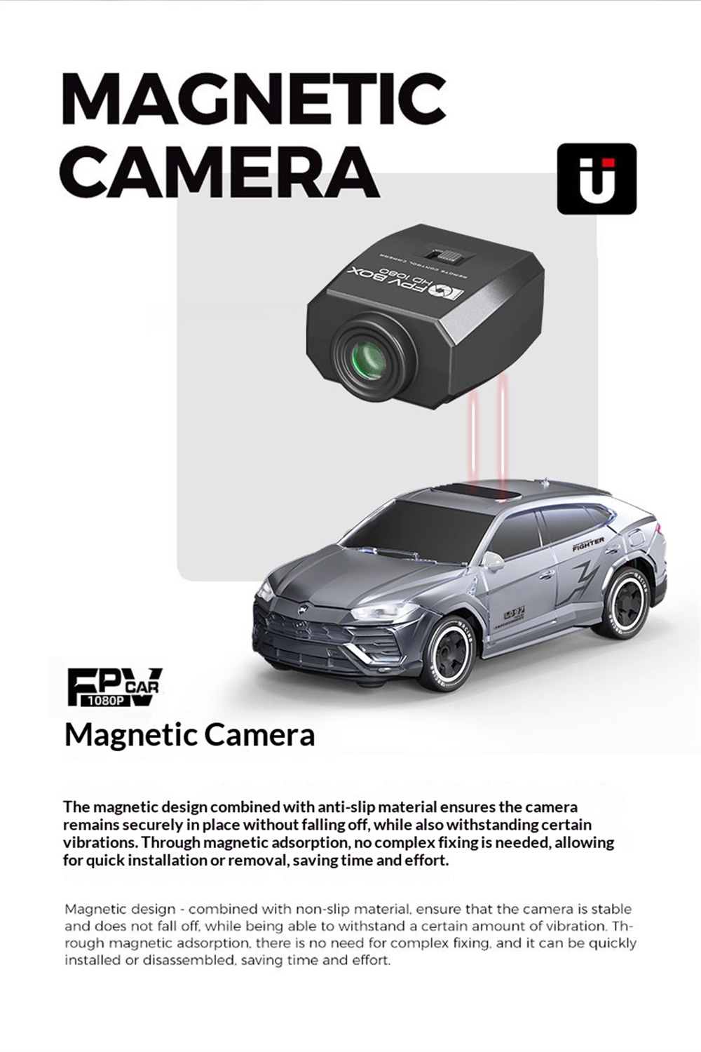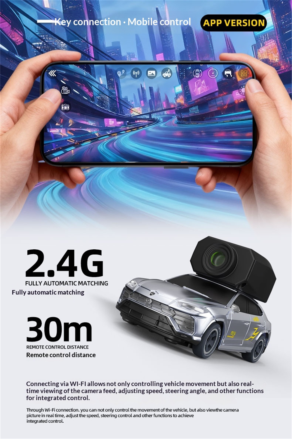 1. 1/64 scale 4WD drift car, full-scale control system, 720P magnetic HD camera, real-time video and photo recording via app.