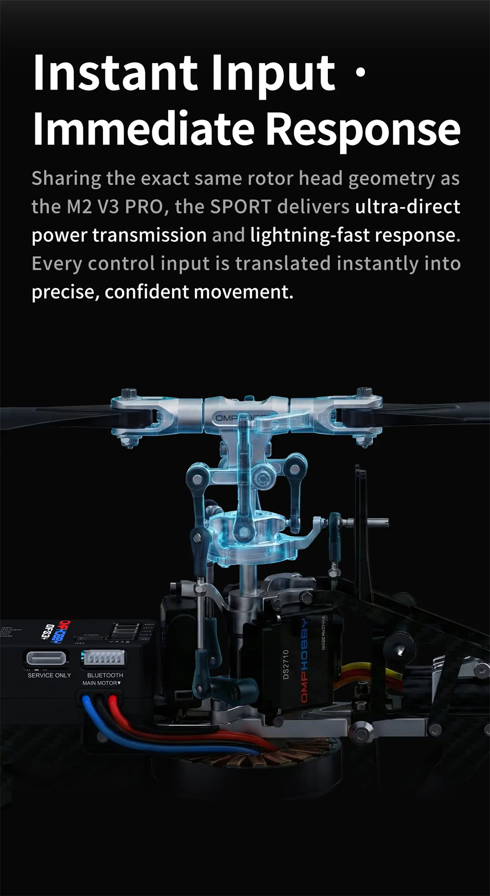 OMPHOBBY M2 V3 Sport 2.4G 6CH 3D Aerobatic Dual Brushless Motor Direct Drive RC Helicopter BNF with OFS3 Flight Control System Built-in ELRS Receiver