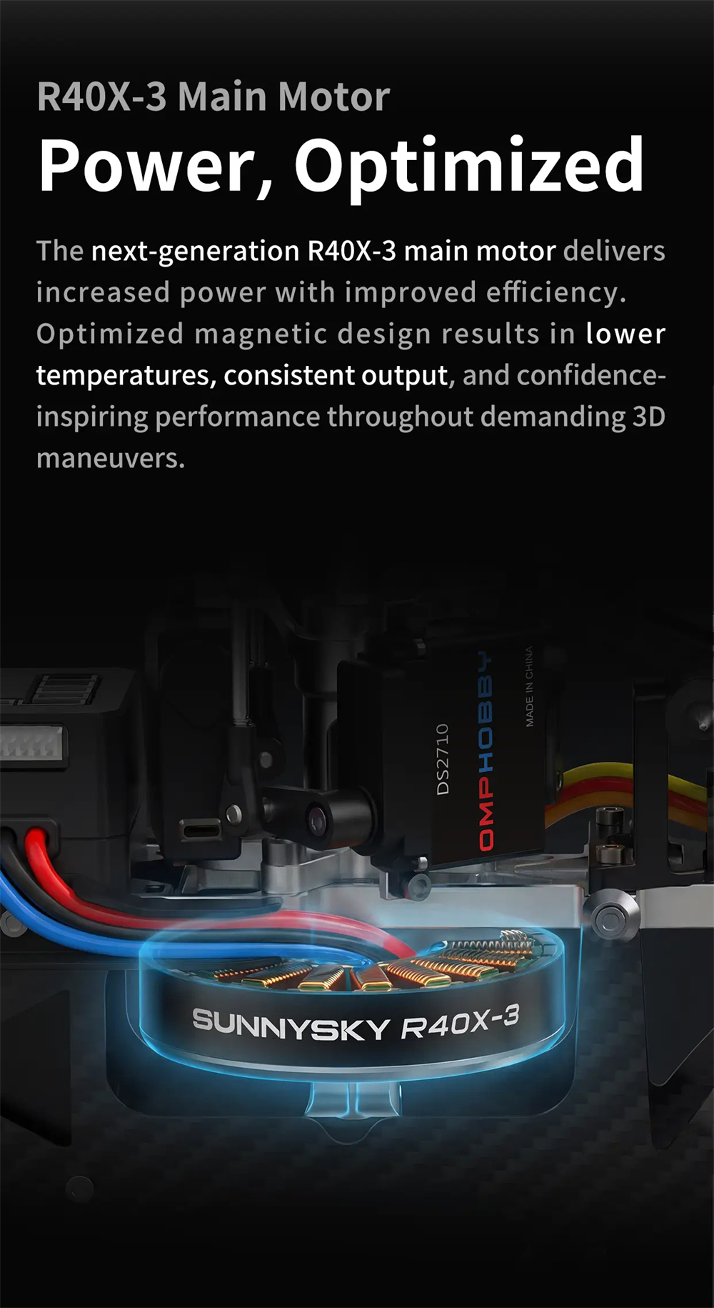 1> Next-Gen Motor Technology: Equipped with R40X-3 main motor for increased power and improved heat efficiency, ensuring optimal output during demanding 3D maneuvers.