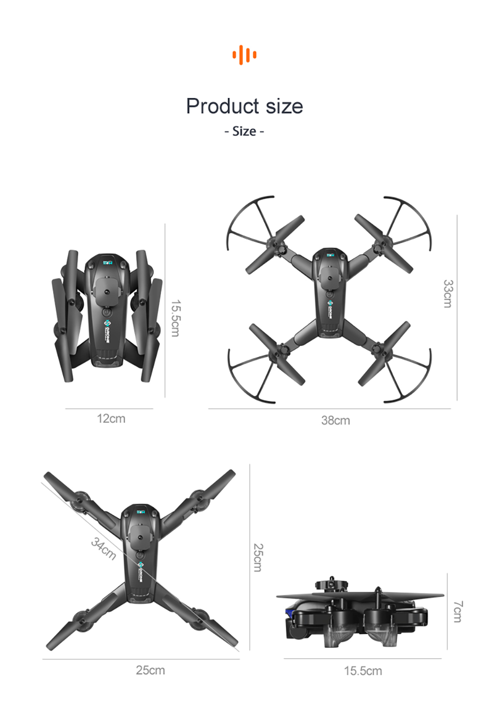 Quad’s Size: 155 x 120 x 70mm (Foldable), 330 x 380 x 70mm (Unfoldable)
