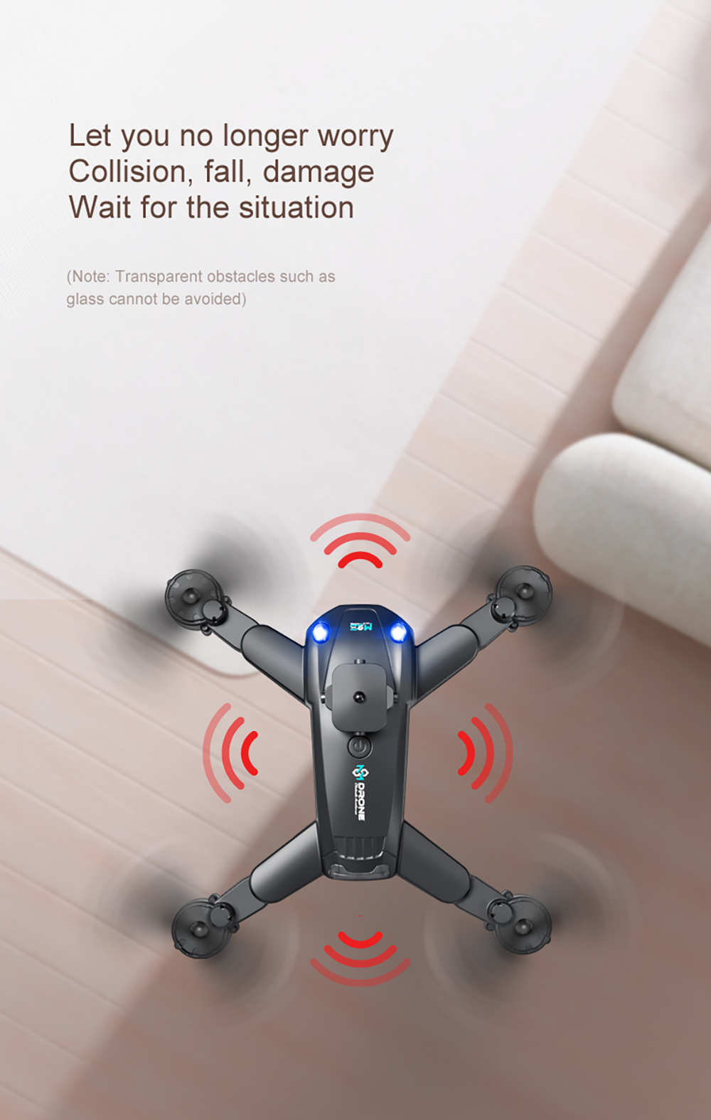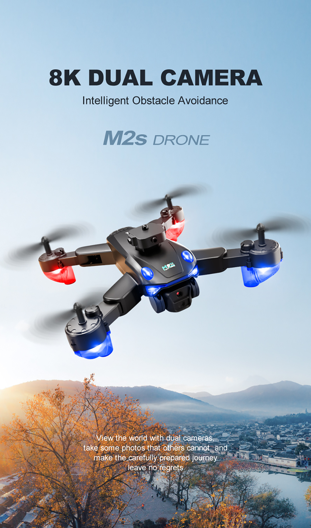 PJC M2S WiFi FPV with HD Dual Camera Electric Adjustment 360 Intelligent Obstacle Avoidance Optical Flow Positioning Highlight LED Brushless Foldable RC Drone Quadcopter RTF