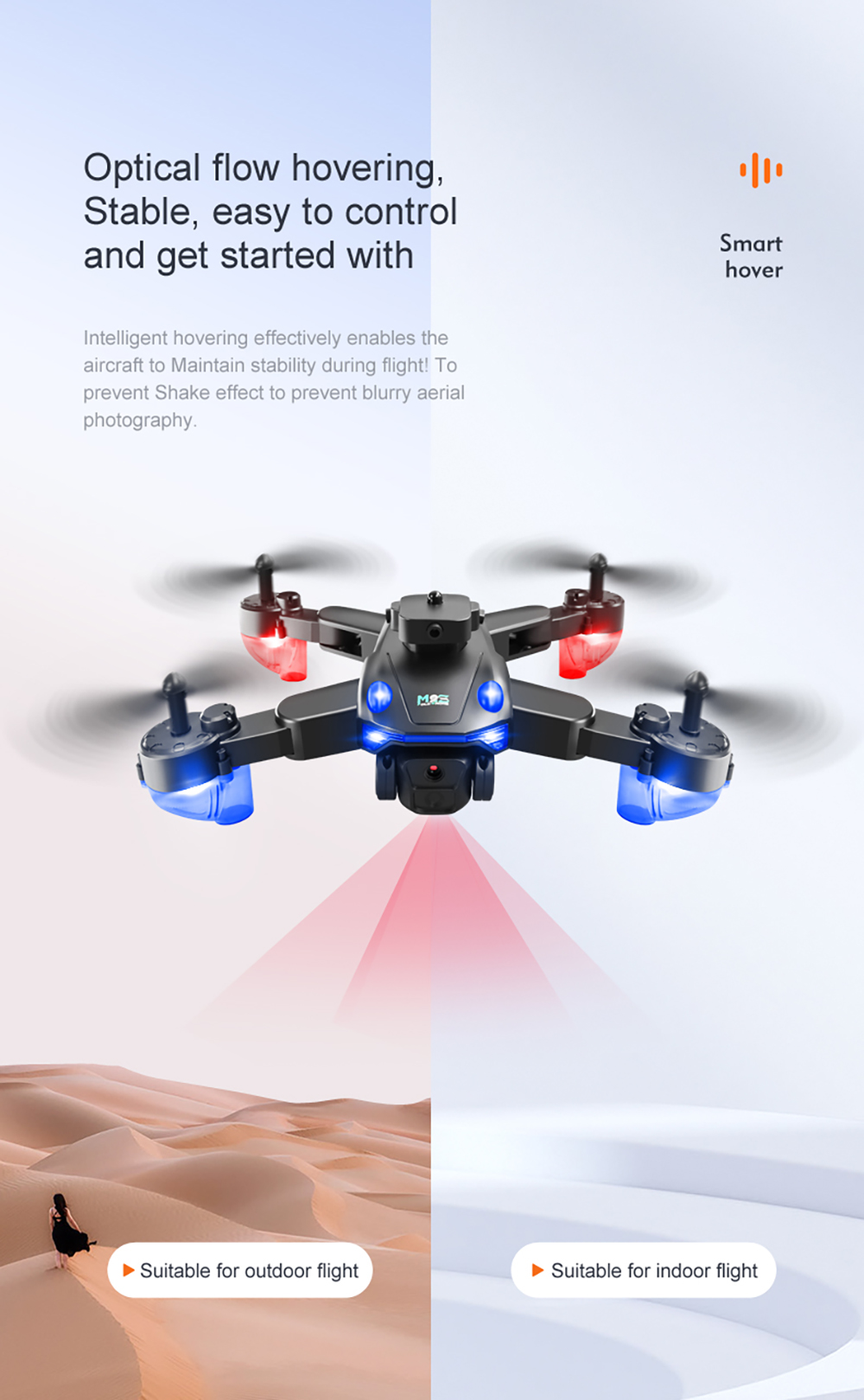 2: Equipped with altitude holding mode function, optical flow fixed-point positioning function, stable flight.