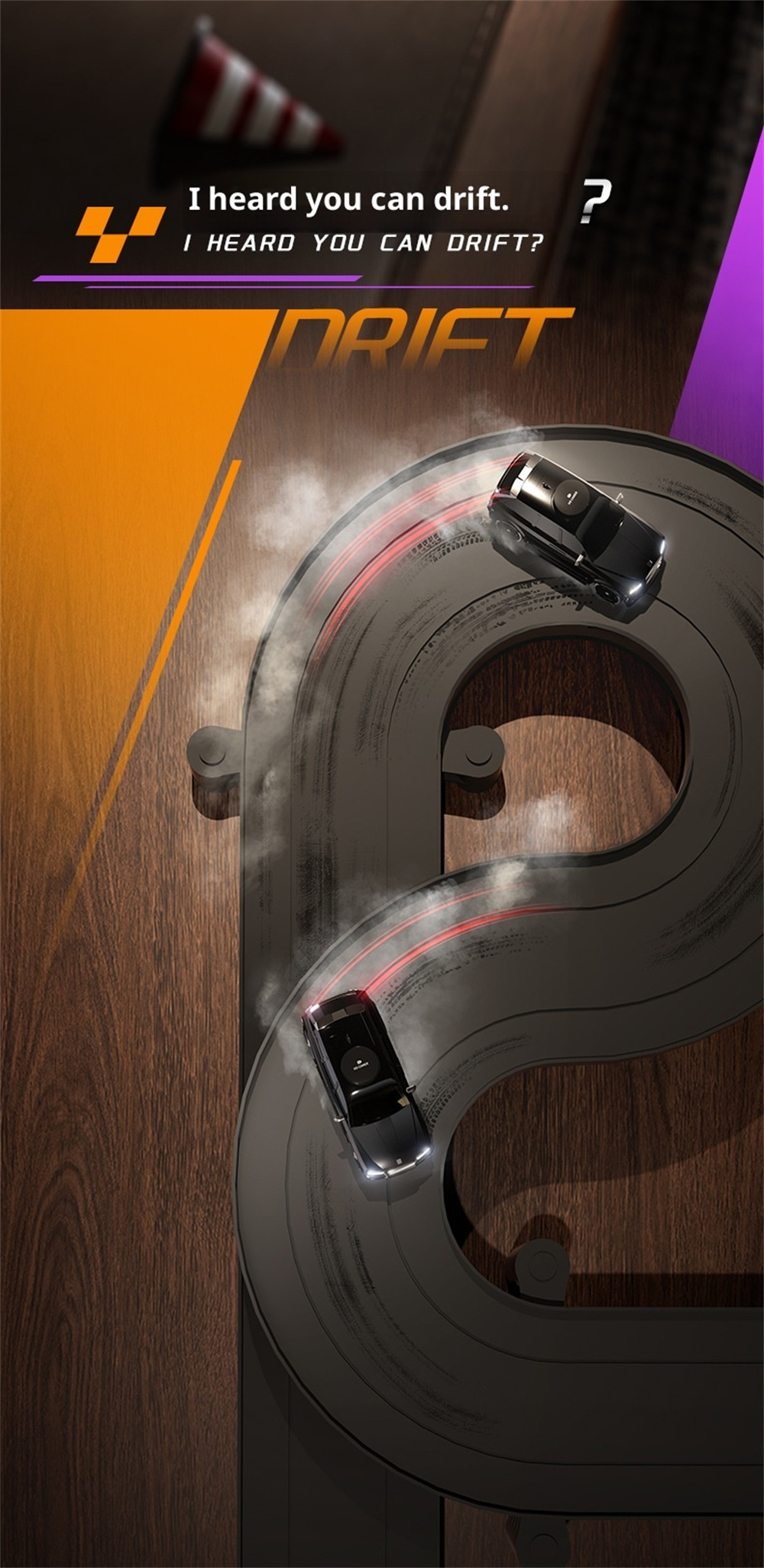 With Two types of tires,drift and racing tires,you can change tires to experience different driving feeling
