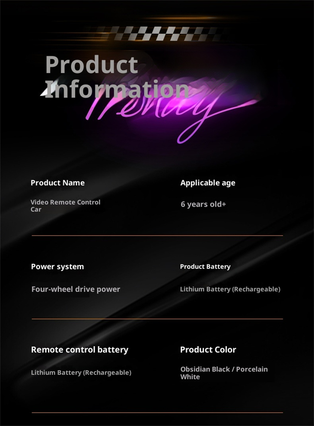 Front Camera Resolution:Picture 1280*720p,video record 1280*720p 20fps Real-time Image Transmission Distance:About 40-50m App Name/System:WIFI-CAR(ios 8.0/Android) Camera Parameter:Remote control for raising and lowering, and left and right adjustment from 0 to 270 degrees. |