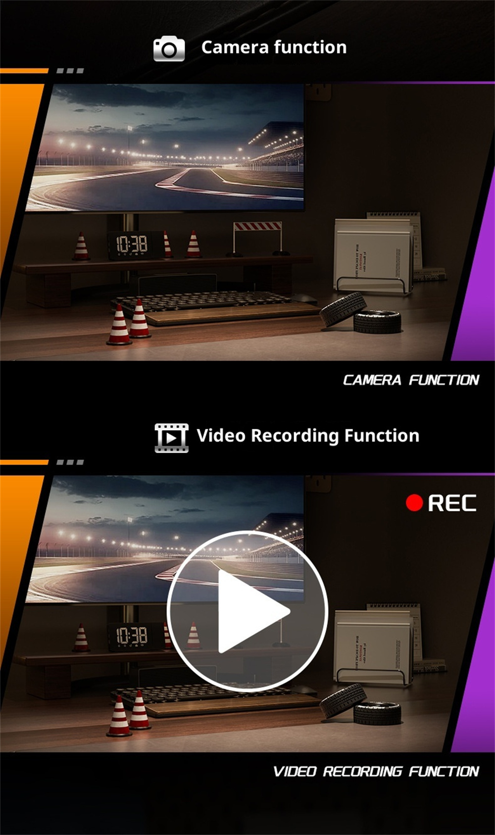 Equipped with a high-definition 720P camera,the camera is rotatable,it can be operated rises or lowers or rotate left and right,you can take photos and videos