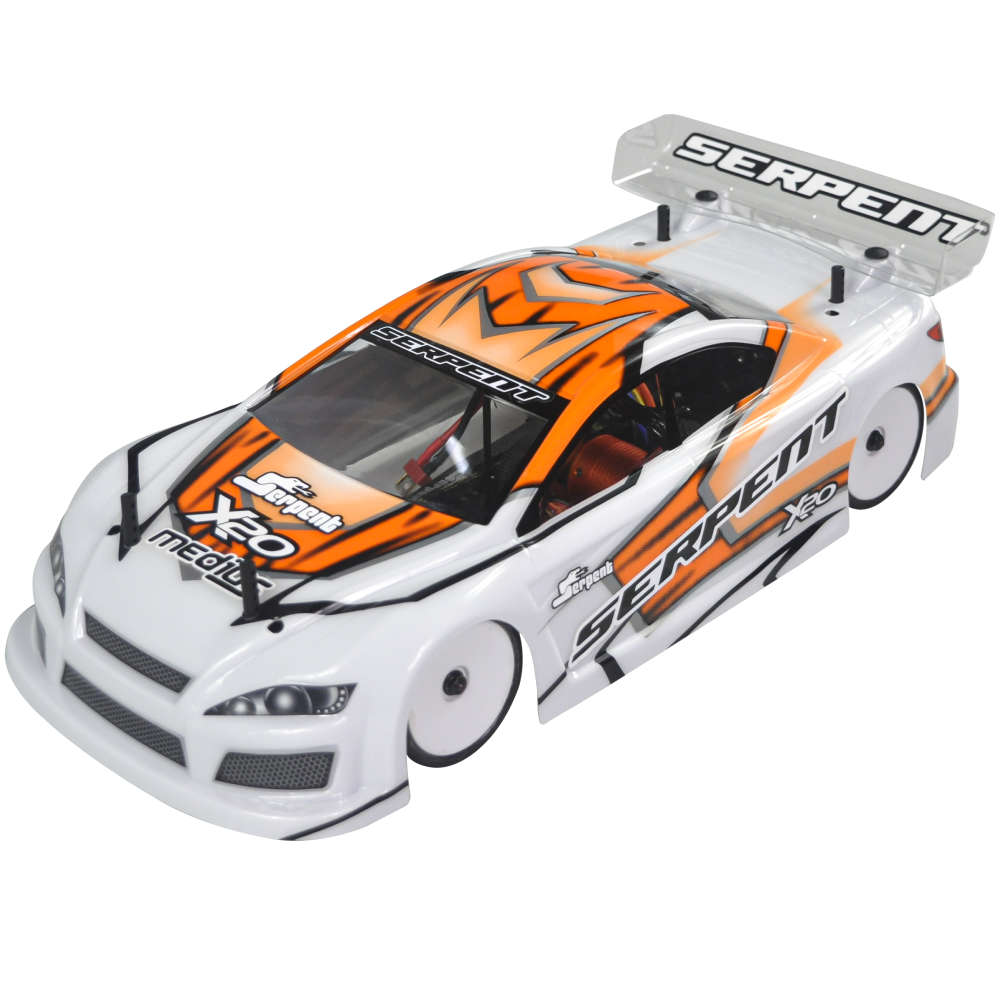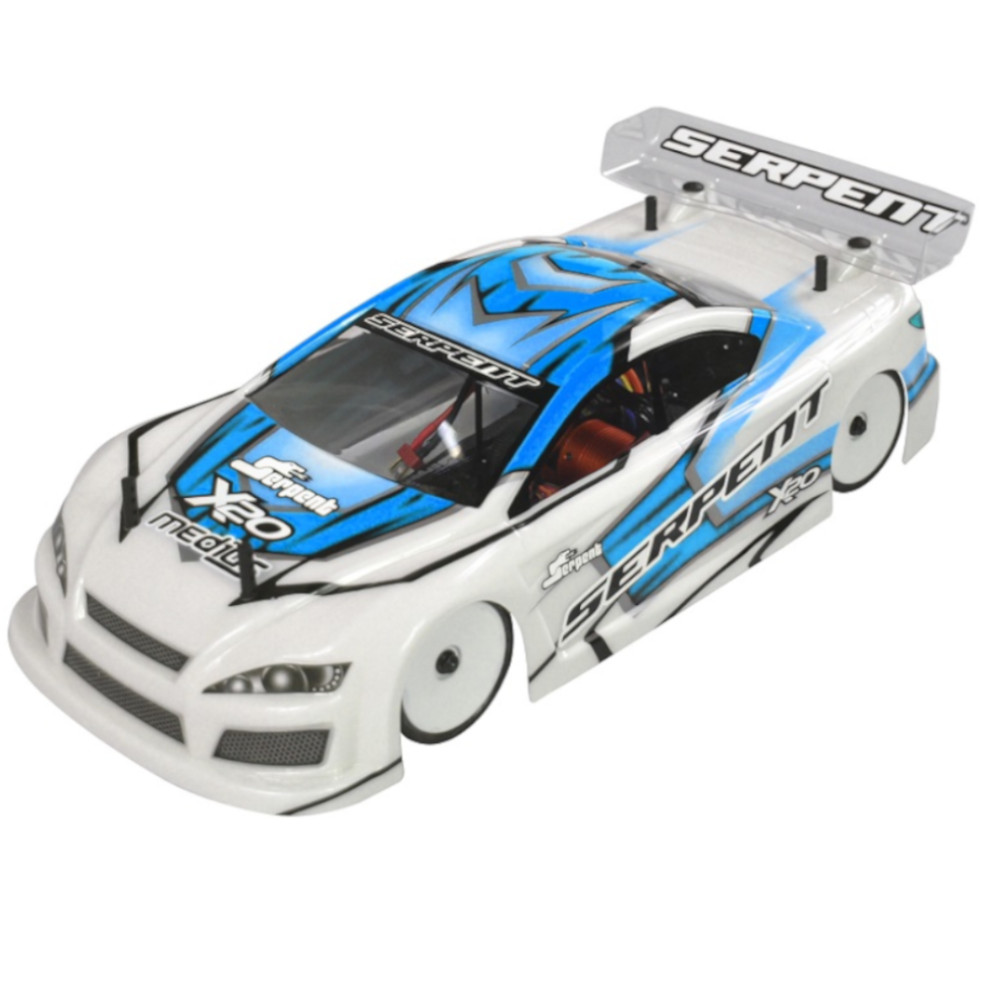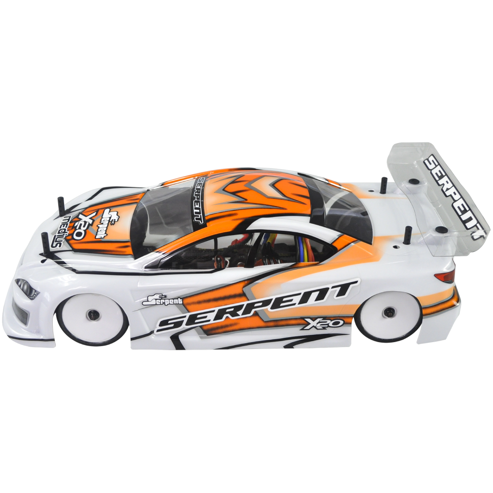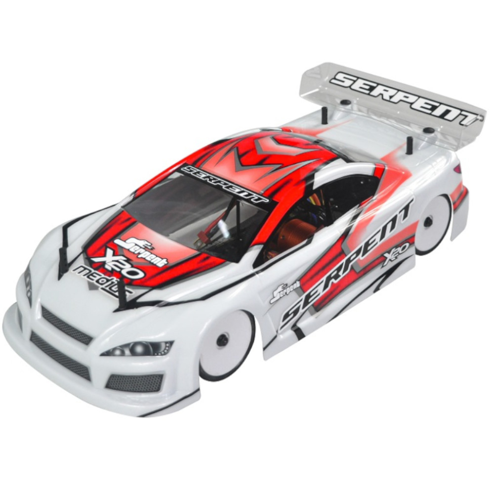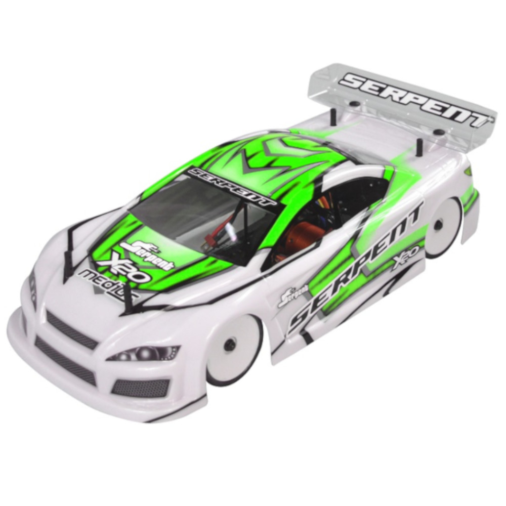 Serpent 190mm 1/10 scale Touringcar, based on the successful X20 race-cars. Factory assembled, with race-wheel-tyres, pre-cut and prepainted body, Dragon-RC electronic speedo, Dragon-RC brushless 9T motor, Dragon-RC DTS-3 2.4ghZ transmitter. The full package to start racing in the electric touringcar category or just race anywhere for fun