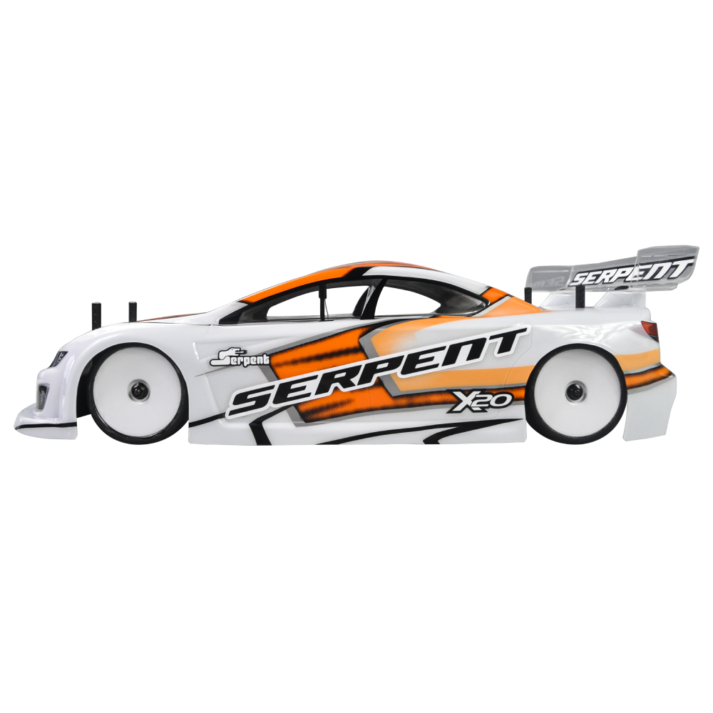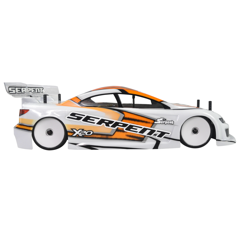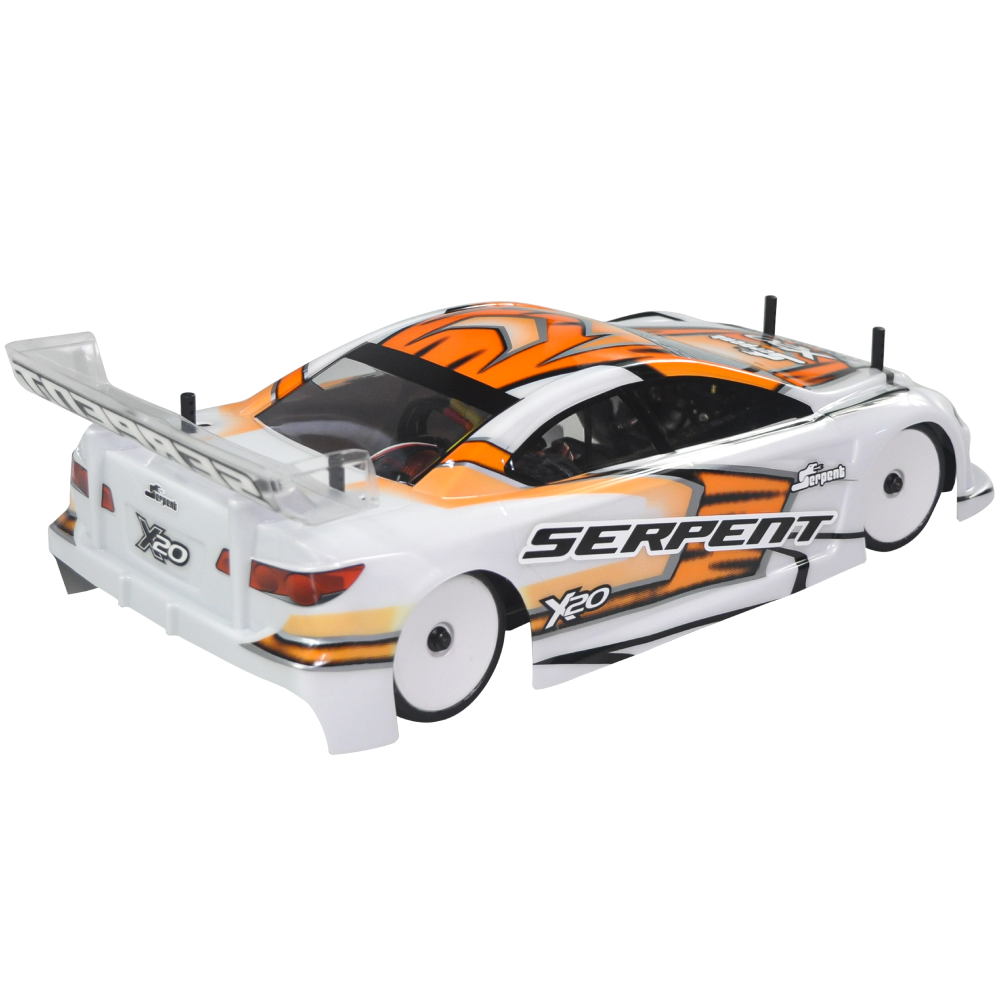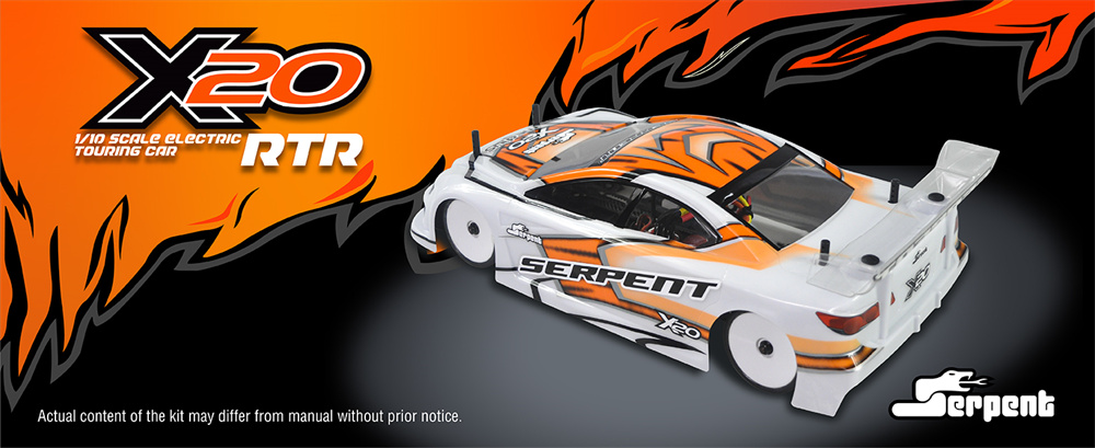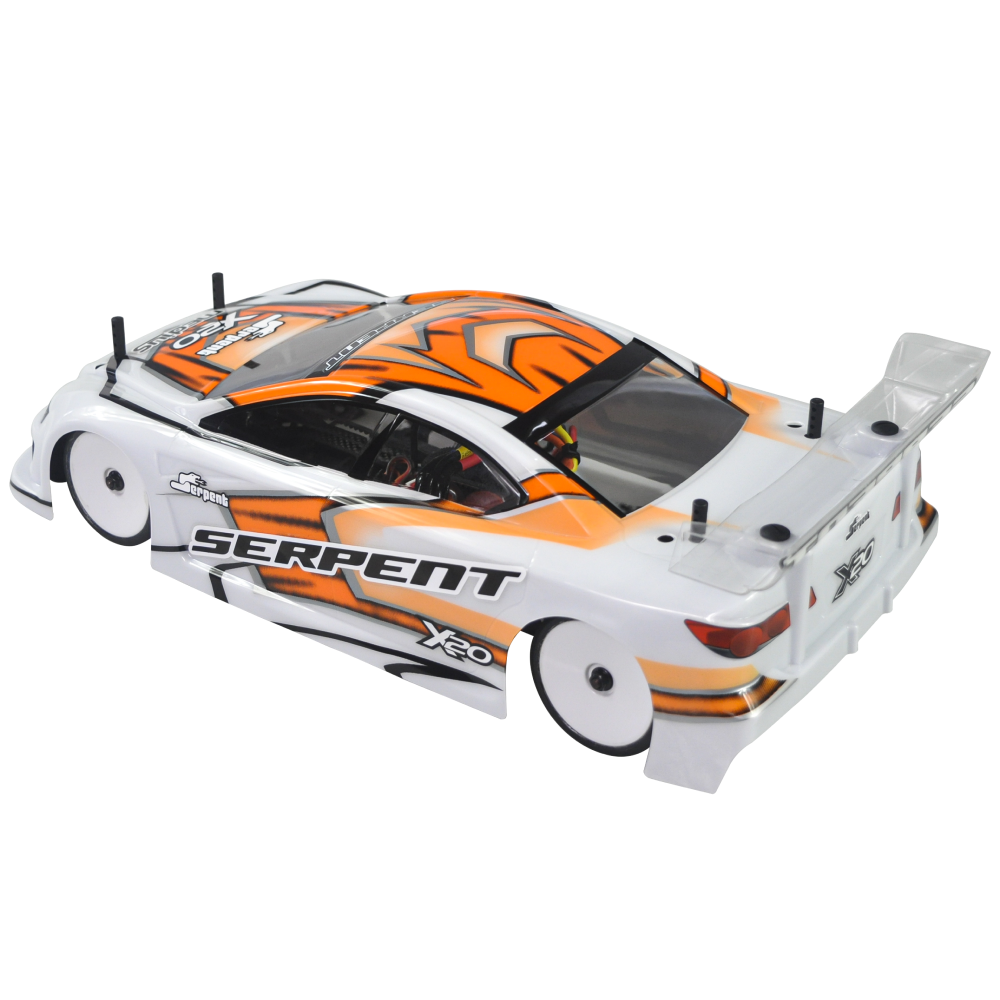 Serpent 190mm 1/10 scale Touringcar, based on the successful X20 race-cars. Factory assembled, with race-wheel-tyres, pre-cut and prepainted body, Dragon-RC electronic speedo, Dragon-RC brushless 9T motor, Dragon-RC DTS-3 2.4ghZ transmitter. The full package to start racing in the electric touringcar category or just race anywhere for fun