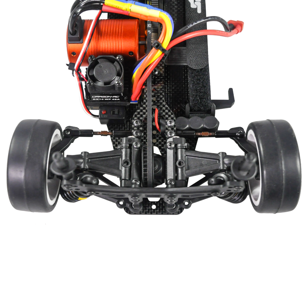 1/10 Touring Car Enhanced Suspension: Experience precise handling and control, including lower front wishbones, anti-roll bar compatibility, and a C-hub/steering block system that provides ultra-precise steering and excellent feedback, letting you master every corner.