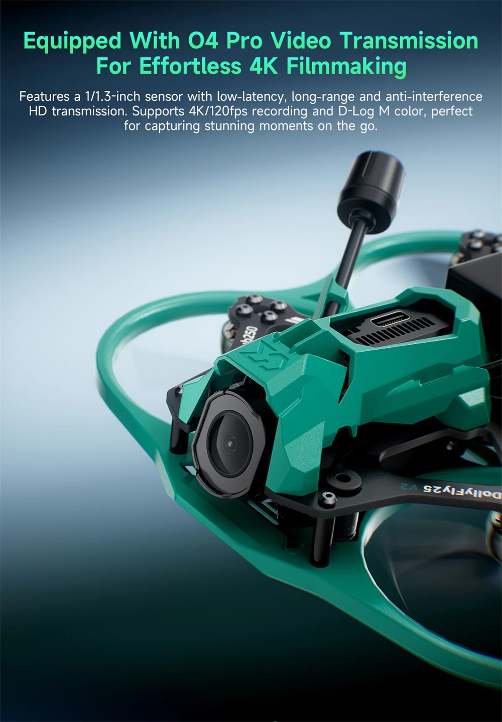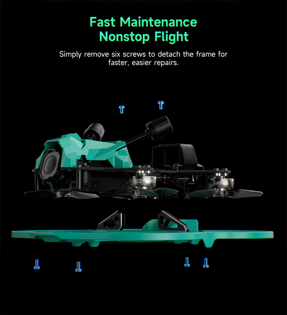 DollyFly25 has been fully upgraded. Equipped with the O4 Air Unit Pro transmission system, it delivers an exceptional imaging experience. The redesigned nose guard protects the O4 Air Unit Pro while adding a sleek, high-tech appearance.