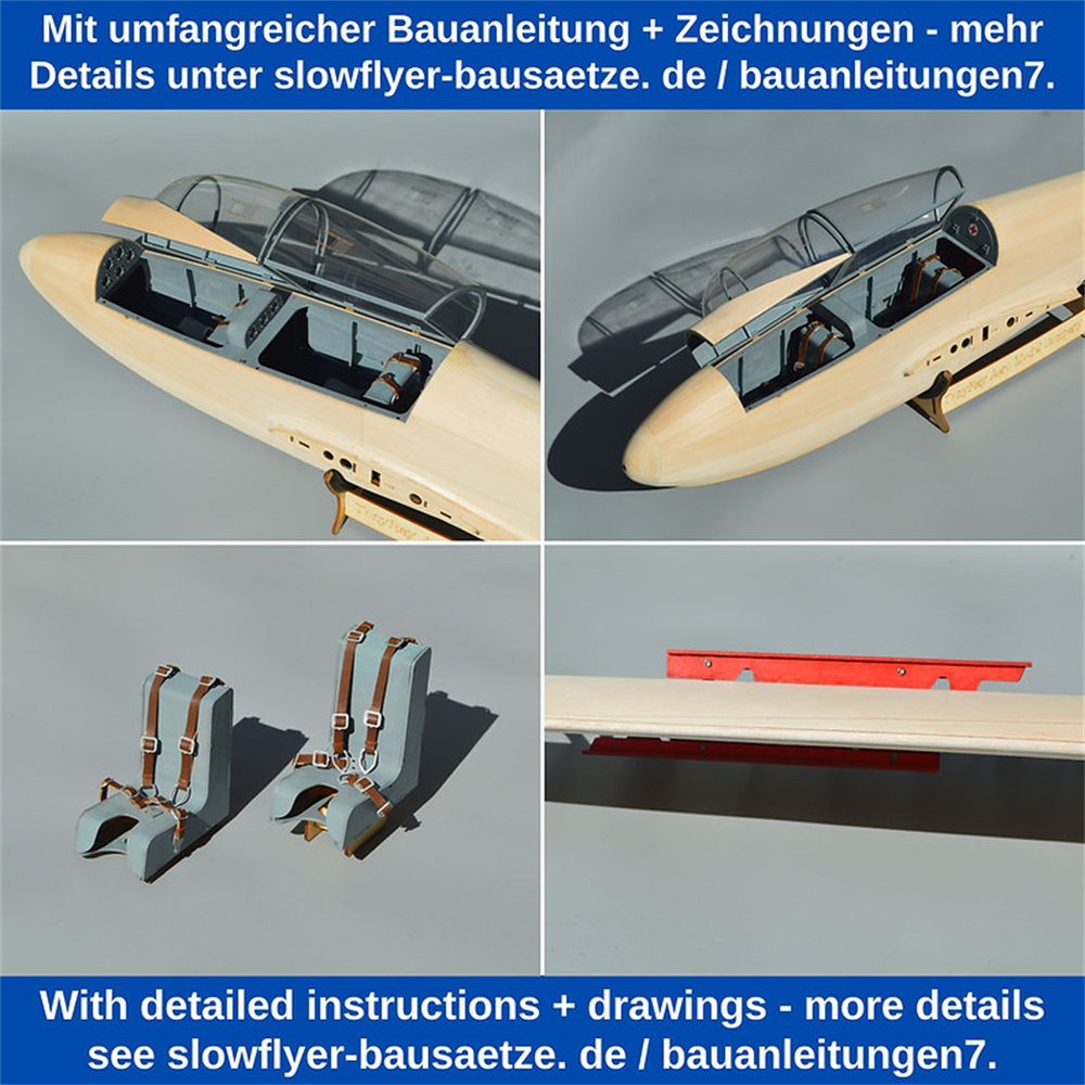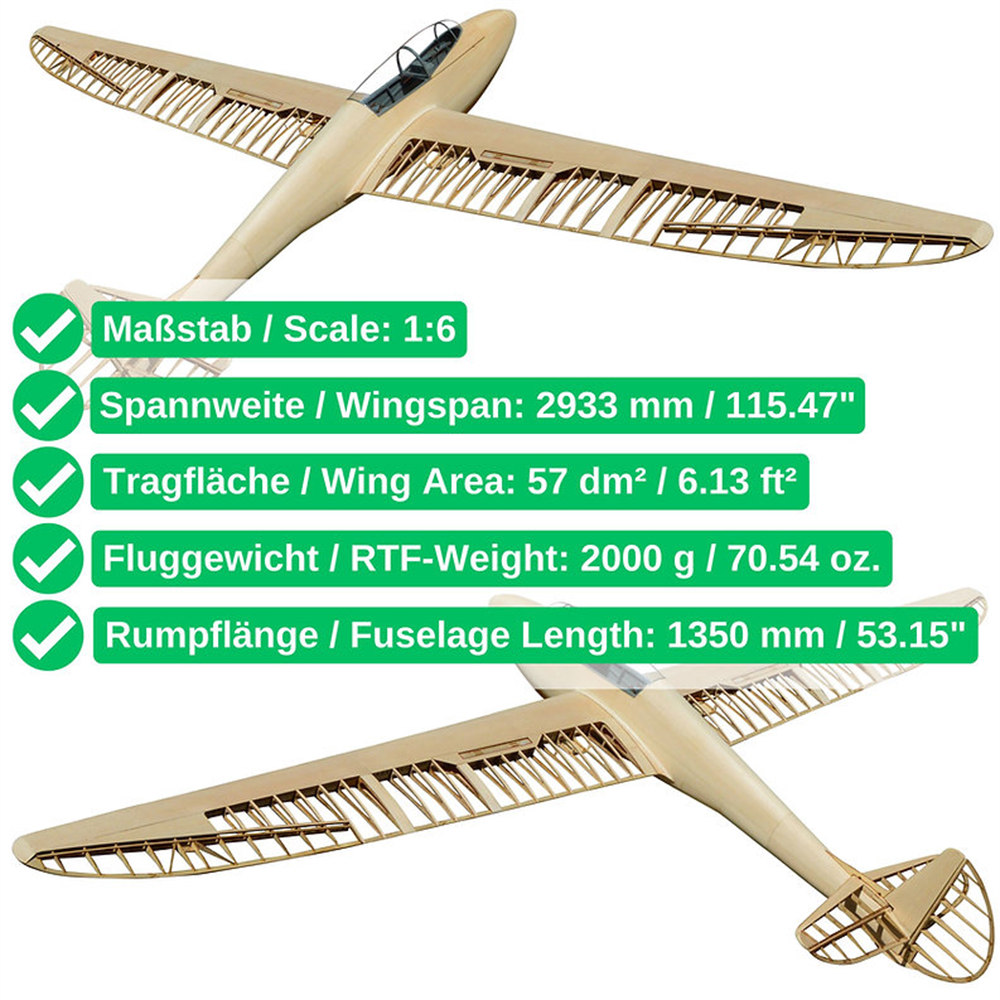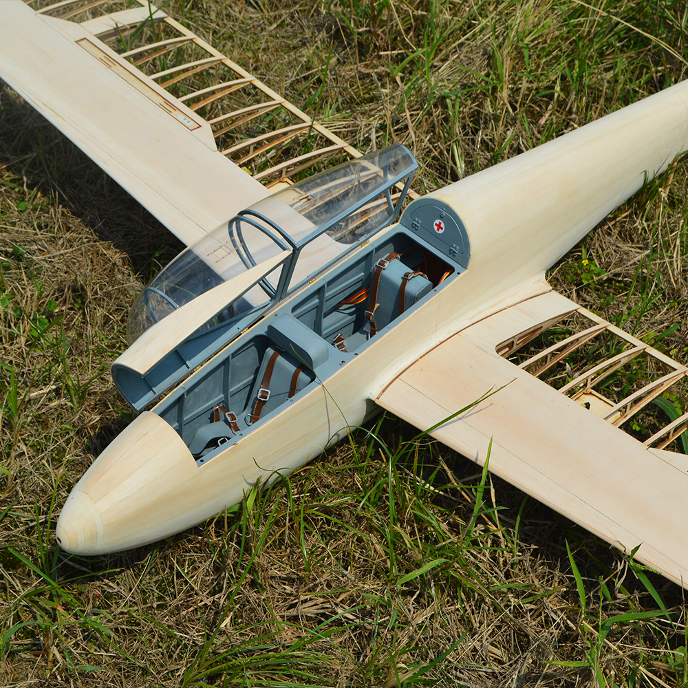 Musger Mg-19B model aeroplane kit, scale 1:6, 2933 mm wingspan, Lasercut wooden parts, E214 profile, 1350 mm fuselage length, 2000 g RTF, RC glider model wooden kit, model kit to build yourself.