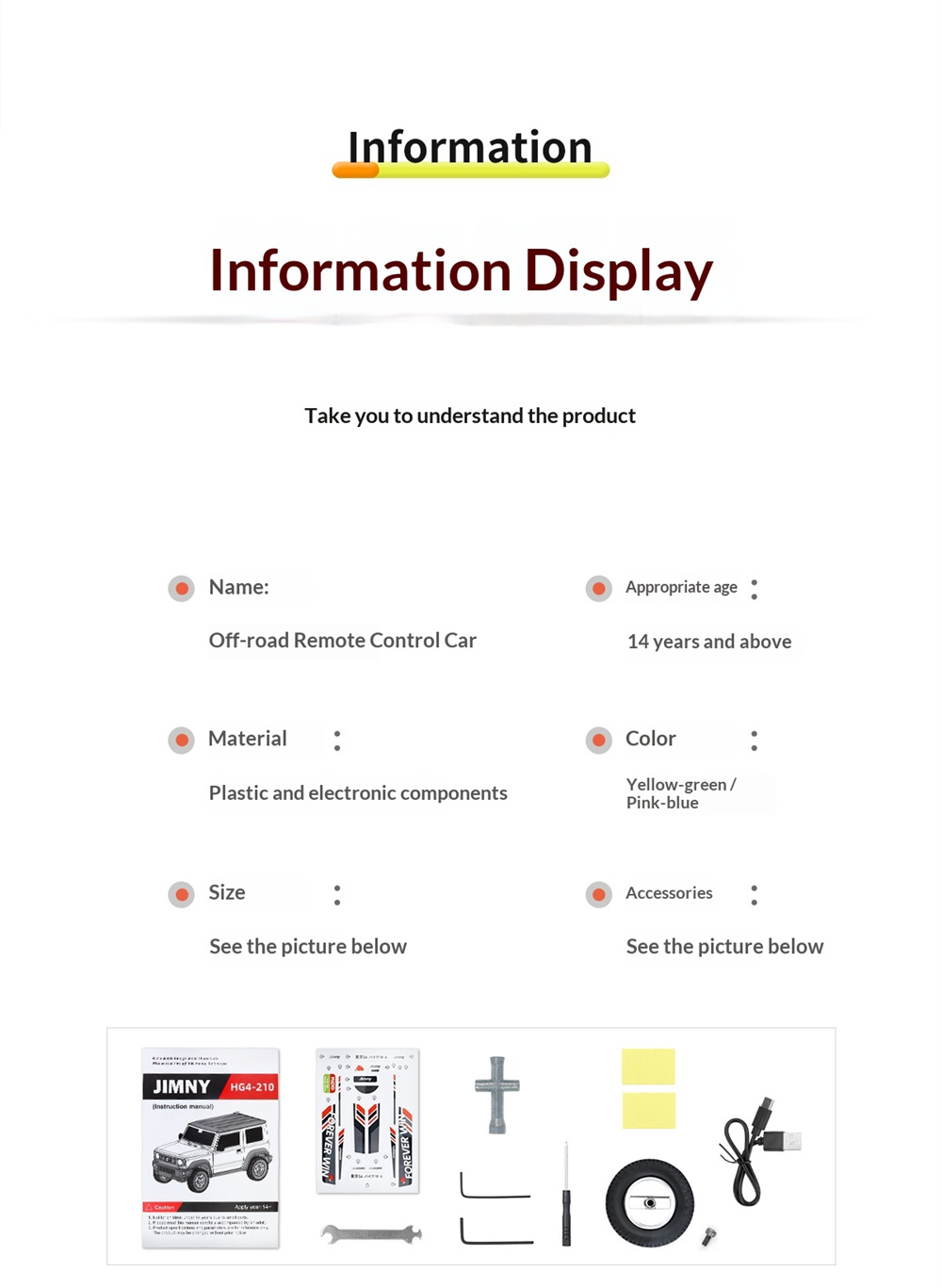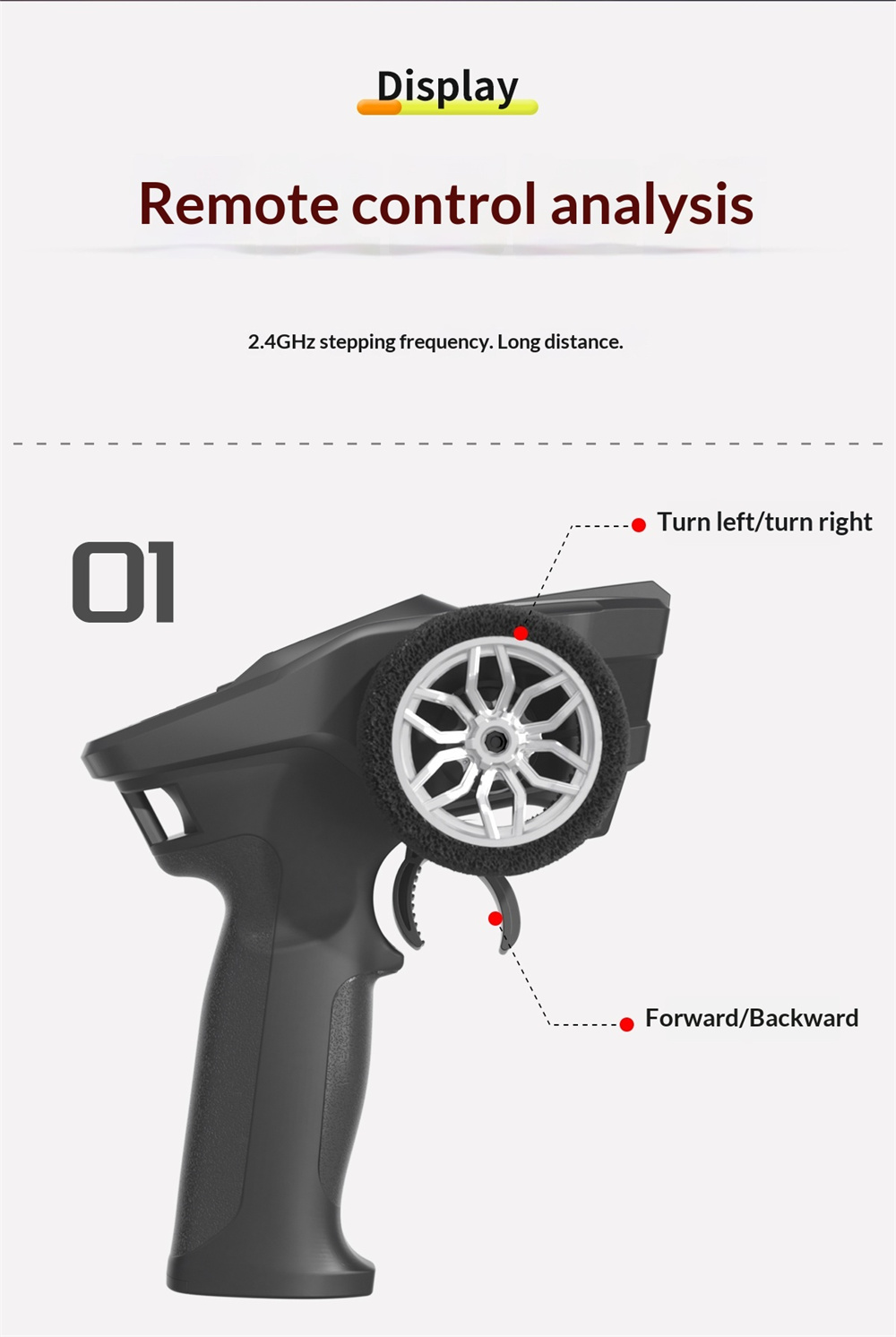 | Transmitter | Frequency:2.4G Channel:4CH Remote Distance:>30m Battery:4X 1.5V AAA(not included) |